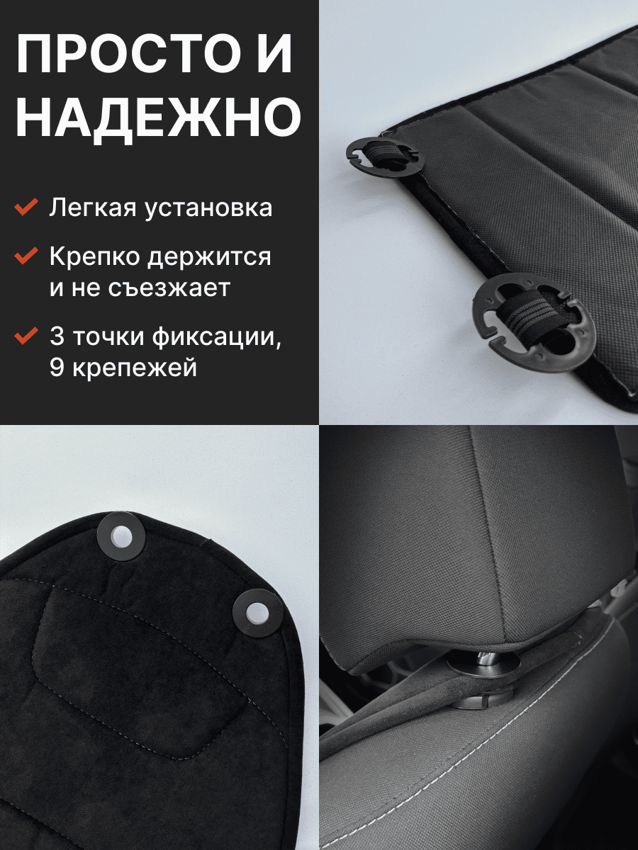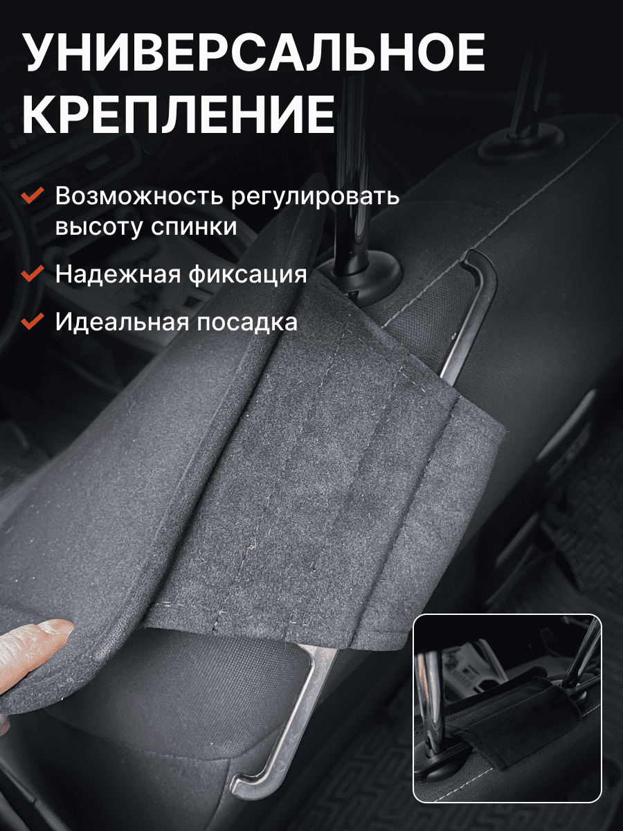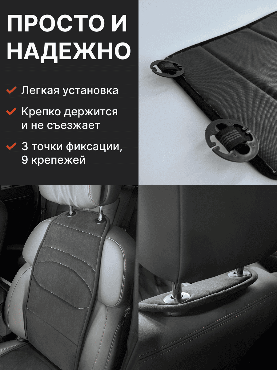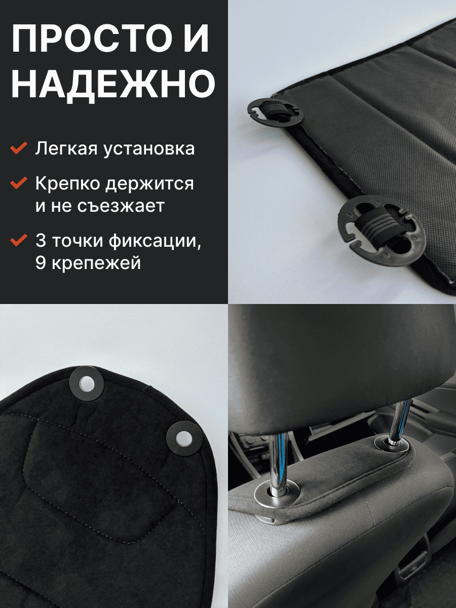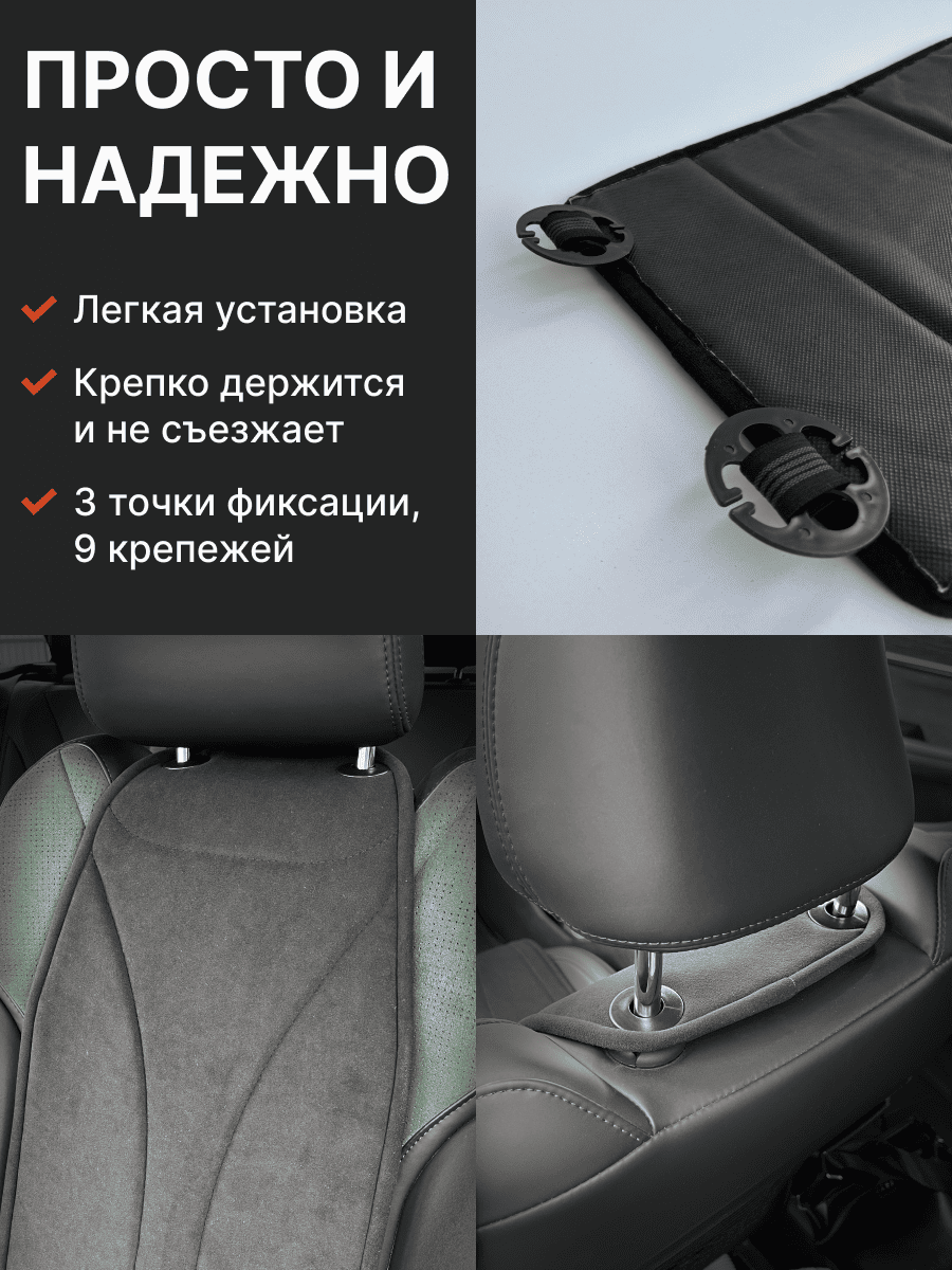 Совместимость: подходит для любых автомобилей. Материал: микровелюр — мягкий, приятный на ощупь, легко чистится, не выгорает. Назначение: защита оригинальной обивки от загрязнений, износа, повреждений. Комфорт зимой и летом. Крепление: надежная фиксация без смещений, простая установка без инструментов, регулирующаяся высота спинки. Безопасность: не мешает срабатыванию боковых подушек безопасности (Airbag). Дизайн: современный внешний вид, улучшает интерьер салона. Уход: легко чистится влажной салфеткой или пылесосом.