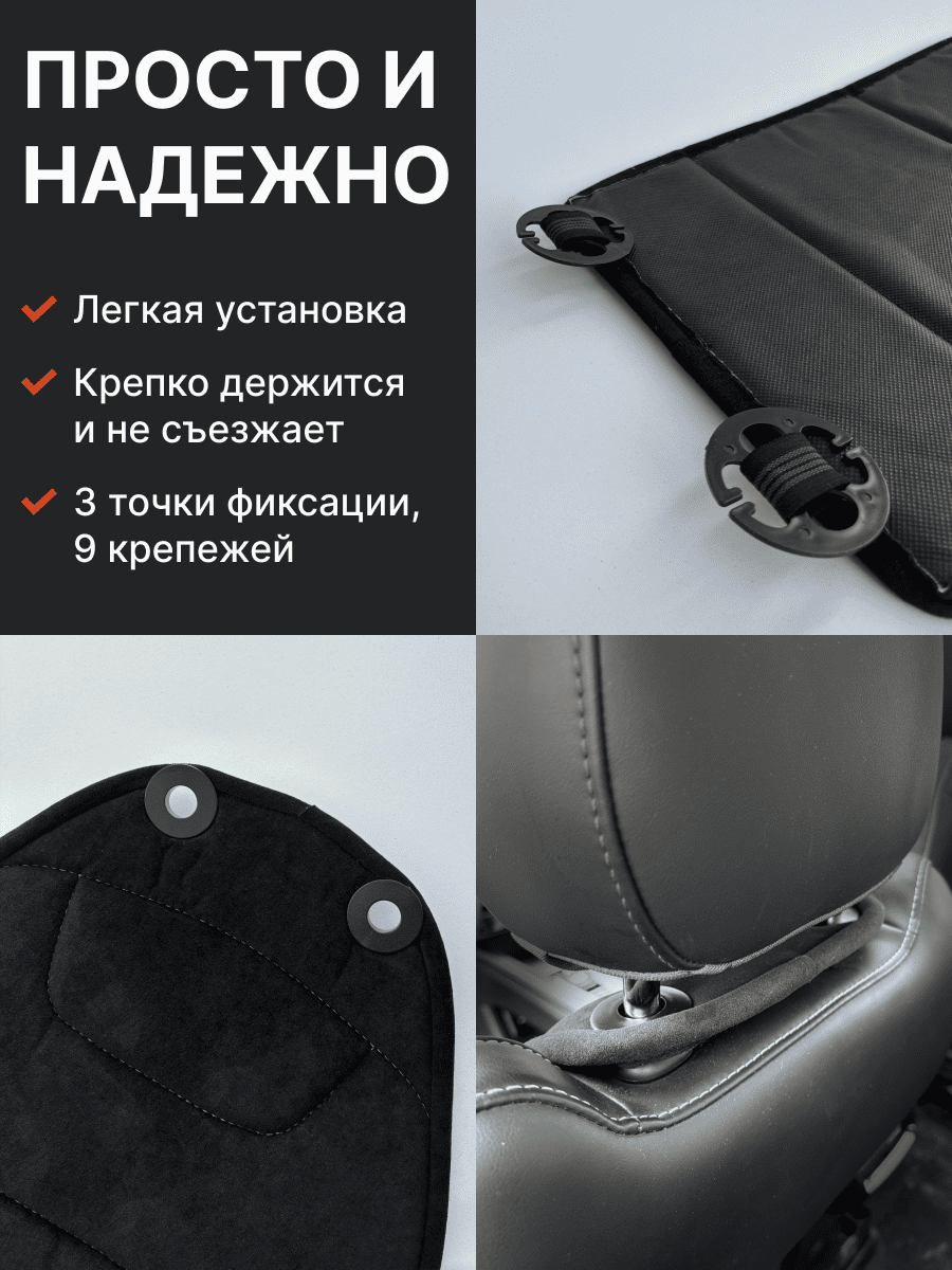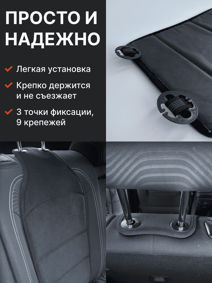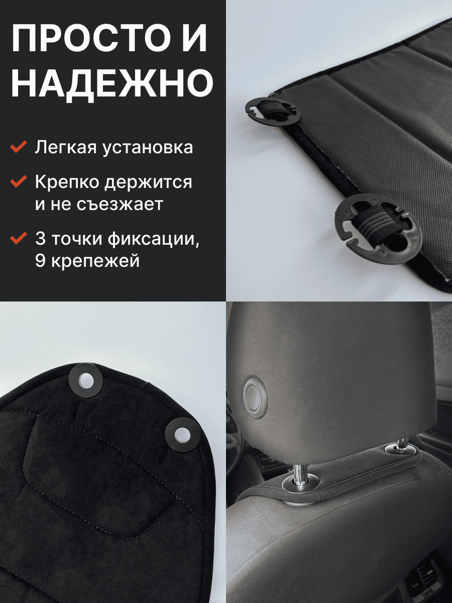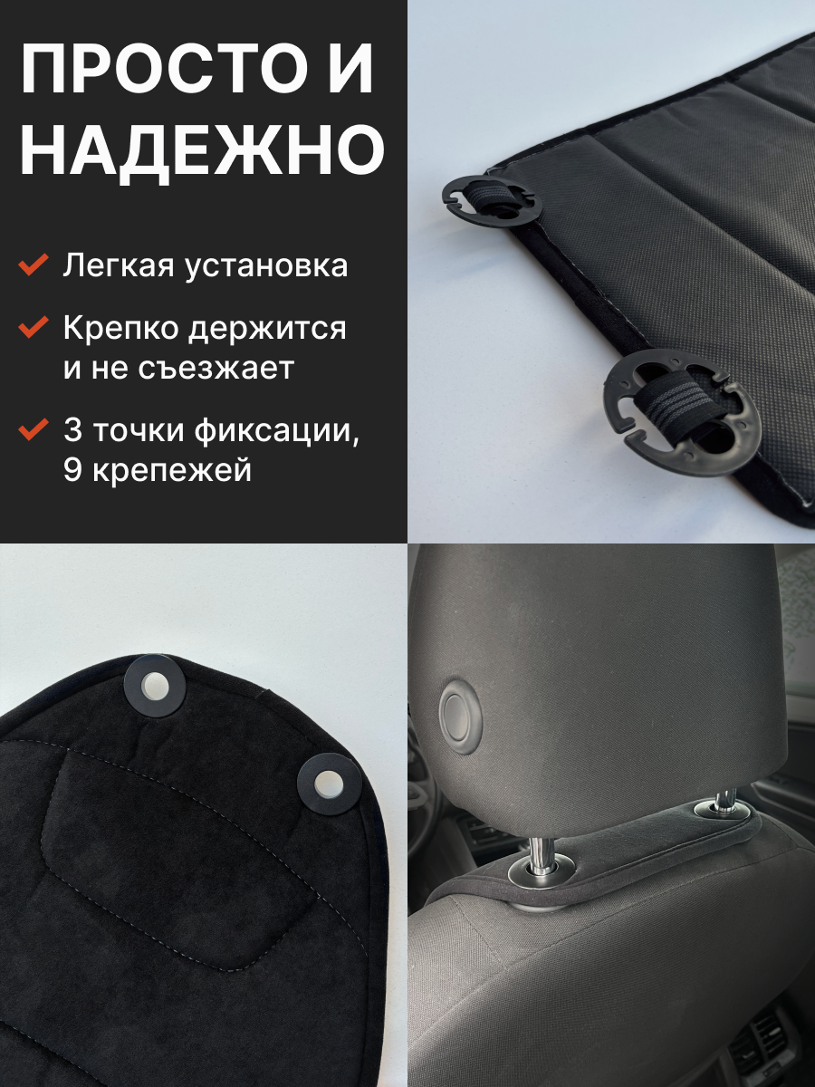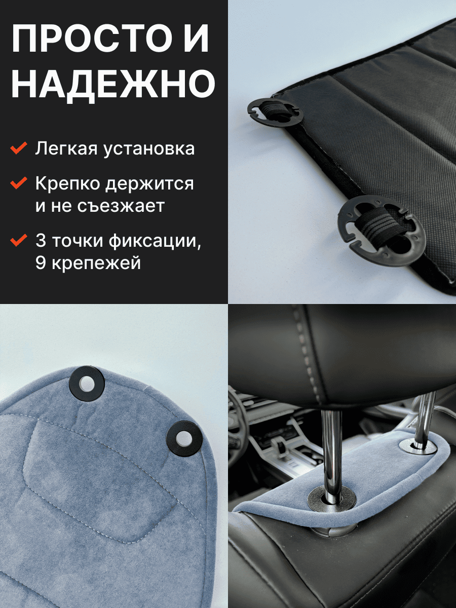 Совместимость: подходит для любых автомобилей. Материал: микровелюр — мягкий, приятный на ощупь, легко чистится, не выгорает. Назначение: защита оригинальной обивки от загрязнений, износа, повреждений. Комфорт зимой и летом. Крепление: надежная фиксация без смещений, простая установка без инструментов, регулирующаяся высота спинки. Безопасность: не мешает срабатыванию боковых подушек безопасности (Airbag). Дизайн: современный внешний вид, улучшает интерьер салона. Уход: легко чистится влажной салфеткой или пылесосом.