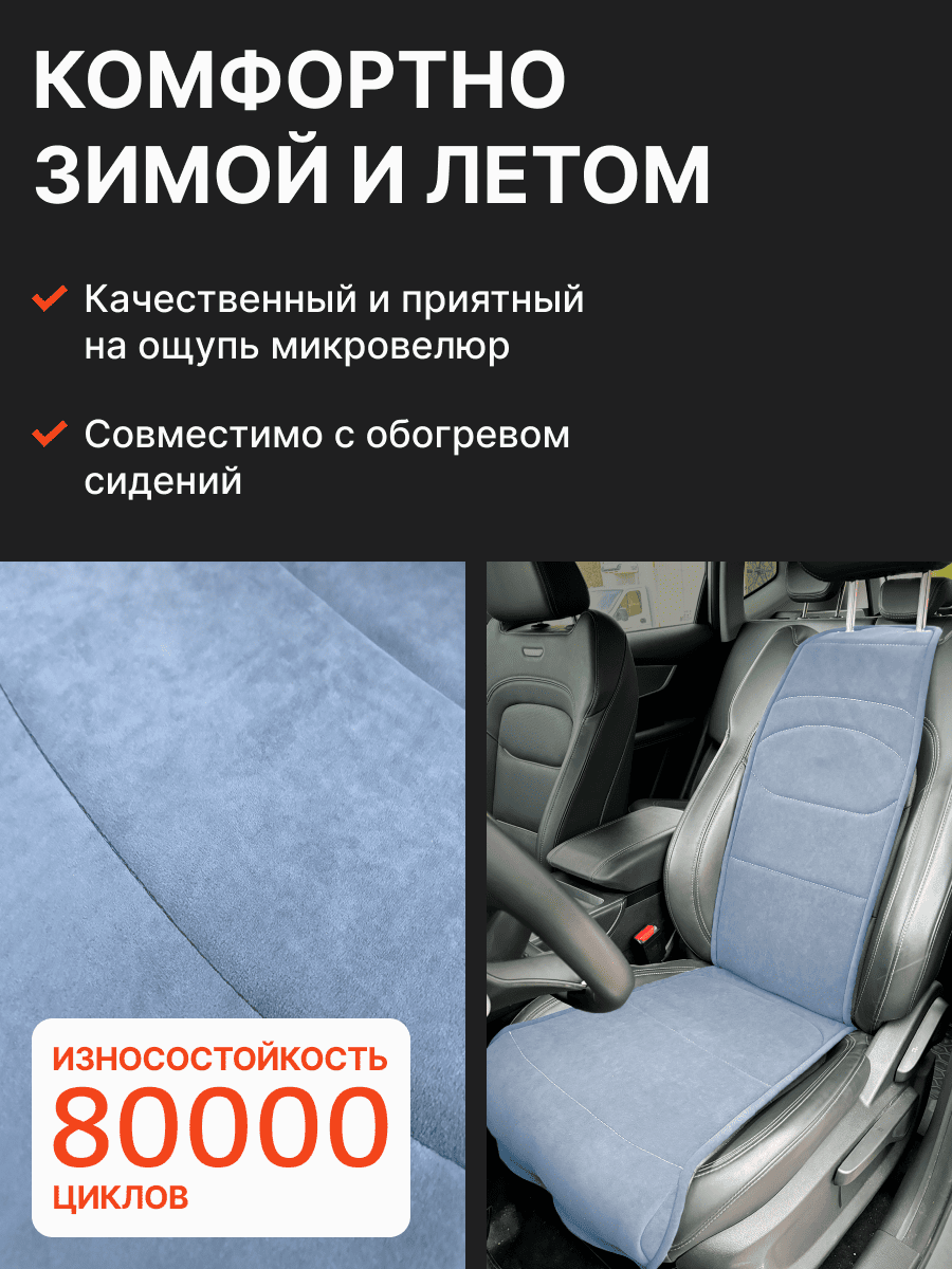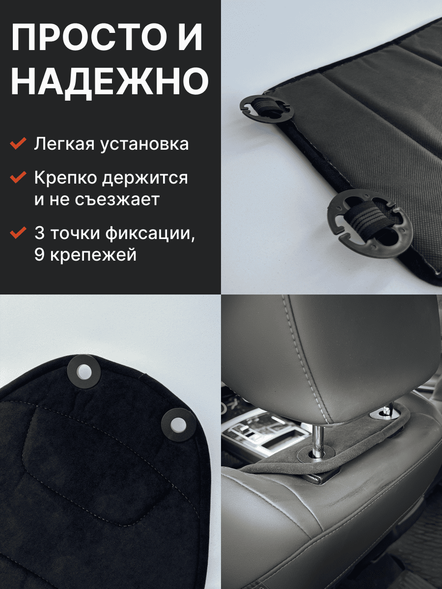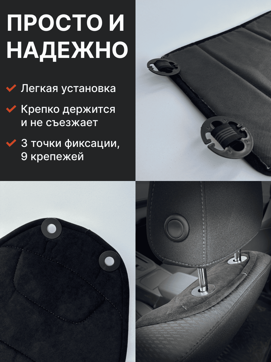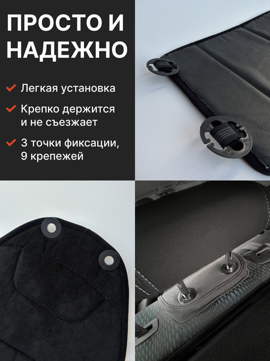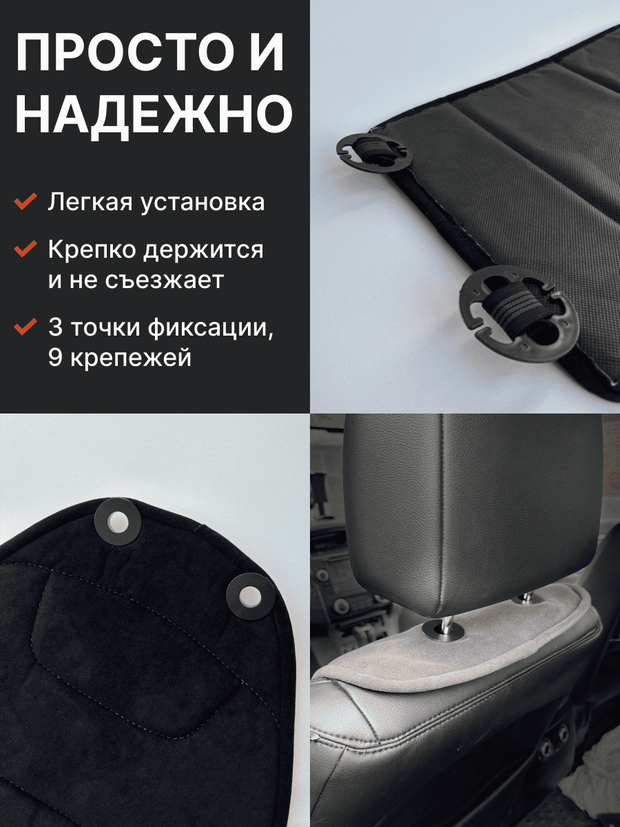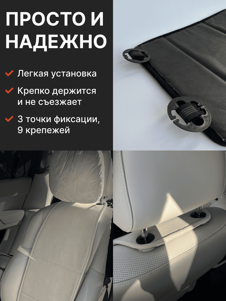 Совместимость: подходит для любых автомобилей. Материал: микровелюр — мягкий, приятный на ощупь, легко чистится, не выгорает. Назначение: защита оригинальной обивки от загрязнений, износа, повреждений. Комфорт зимой и летом. Крепление: надежная фиксация без смещений, простая установка без инструментов, регулирующаяся высота спинки. Безопасность: не мешает срабатыванию боковых подушек безопасности (Airbag). Дизайн: современный внешний вид, улучшает интерьер салона. Уход: легко чистится влажной салфеткой или пылесосом.