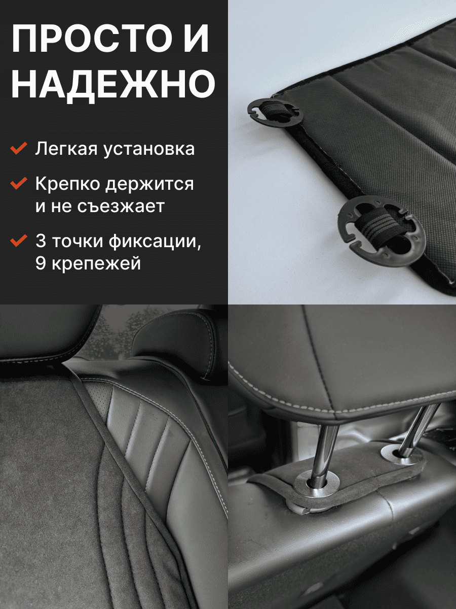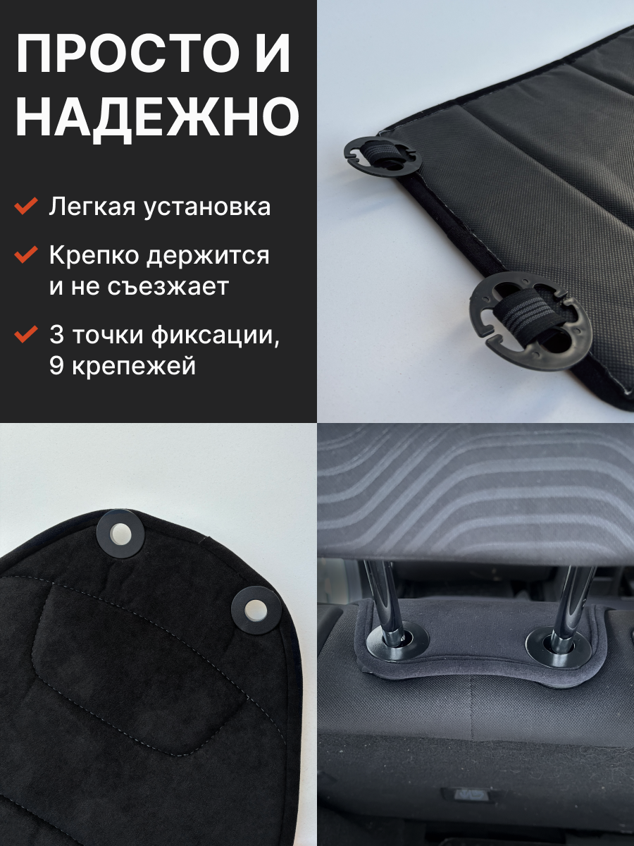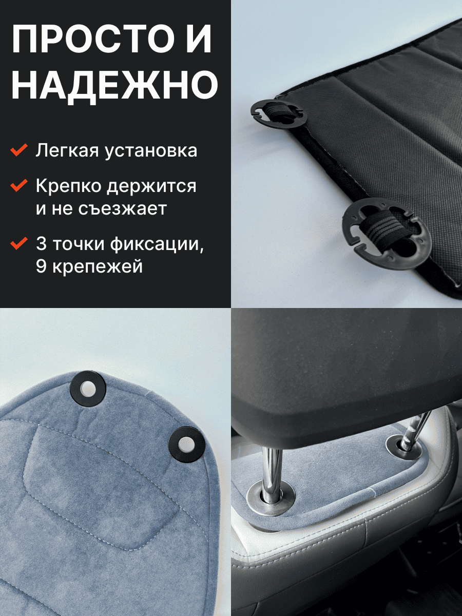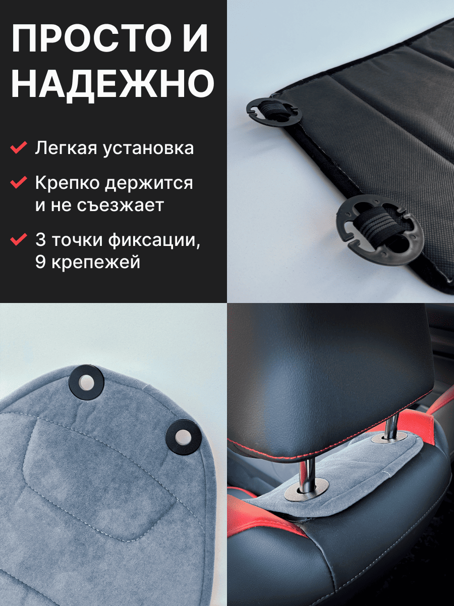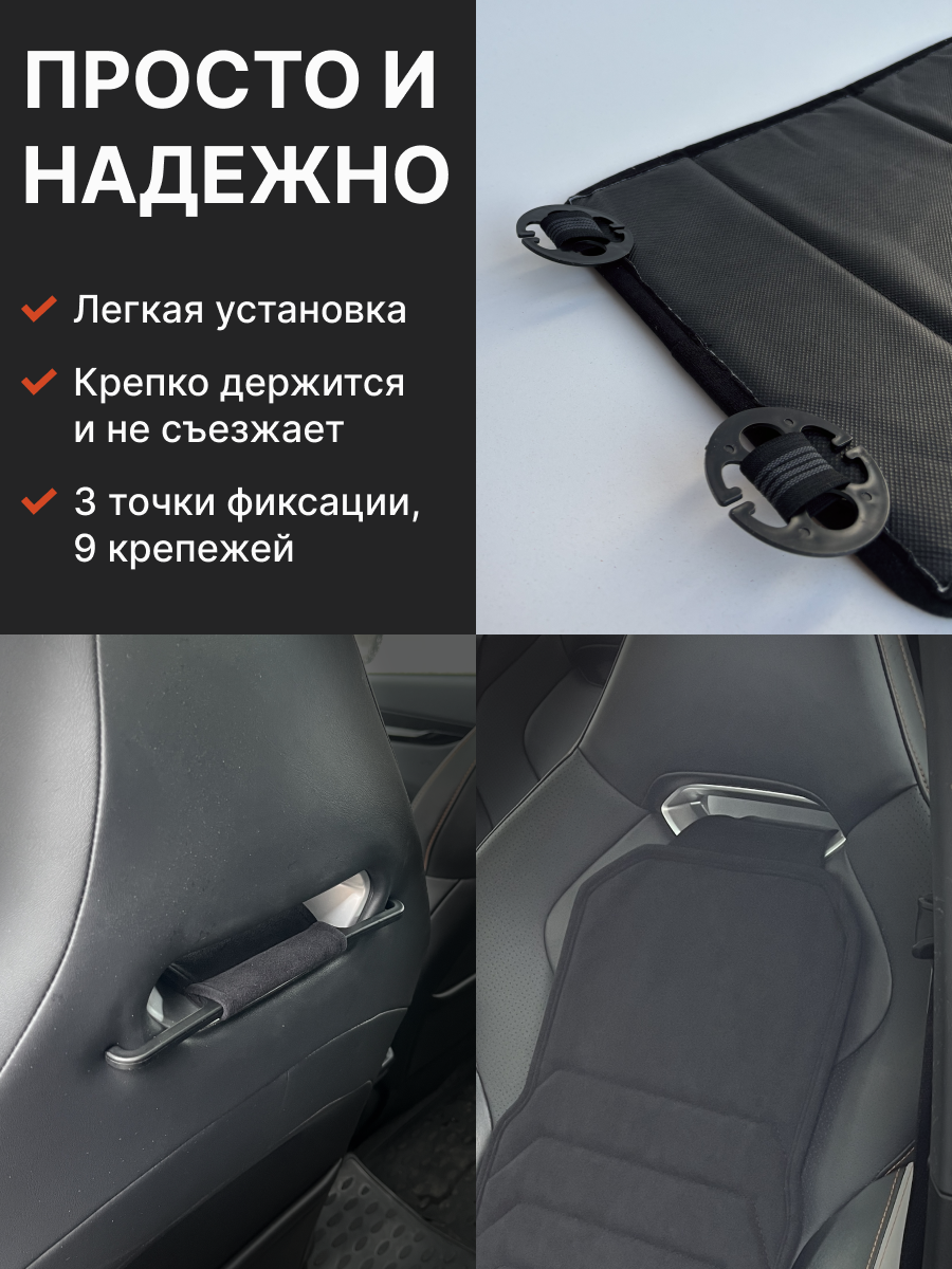 Совместимость: подходит для любых автомобилей. Материал: микровелюр — мягкий, приятный на ощупь, легко чистится, не выгорает. Назначение: защита оригинальной обивки от загрязнений, износа, повреждений. Комфорт зимой и летом. Крепление: надежная фиксация без смещений, простая установка без инструментов, регулирующаяся высота спинки. Безопасность: не мешает срабатыванию боковых подушек безопасности (Airbag). Дизайн: современный внешний вид, улучшает интерьер салона. Уход: легко чистится влажной салфеткой или пылесосом.