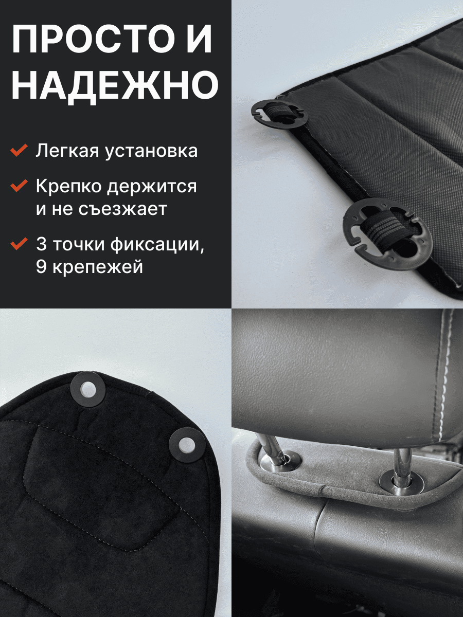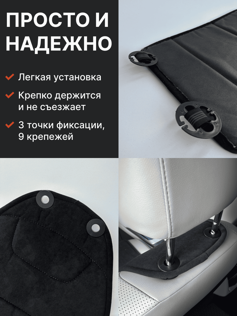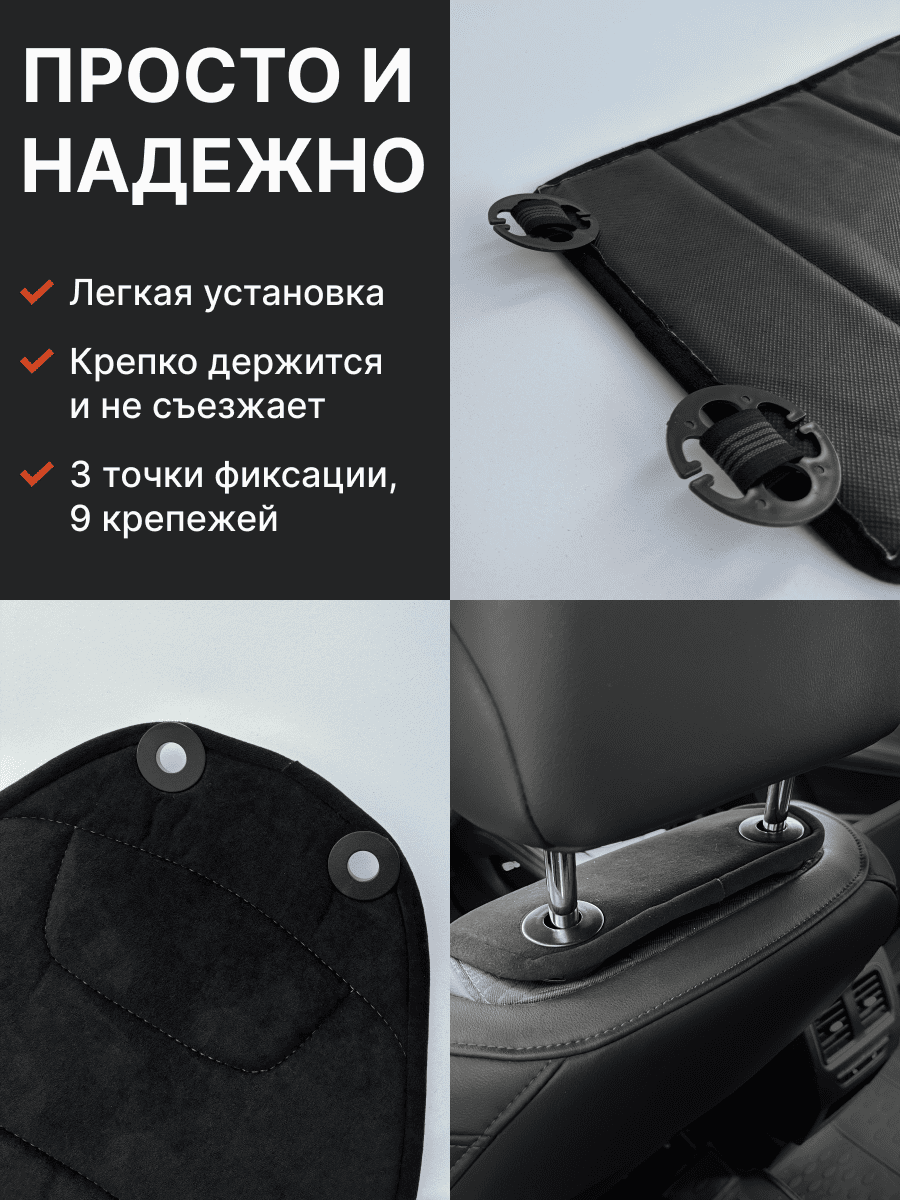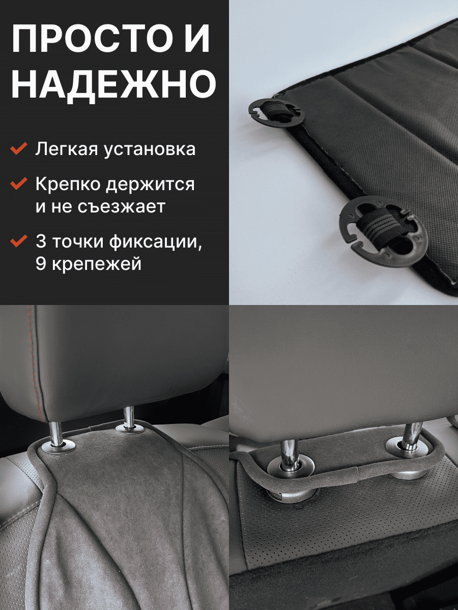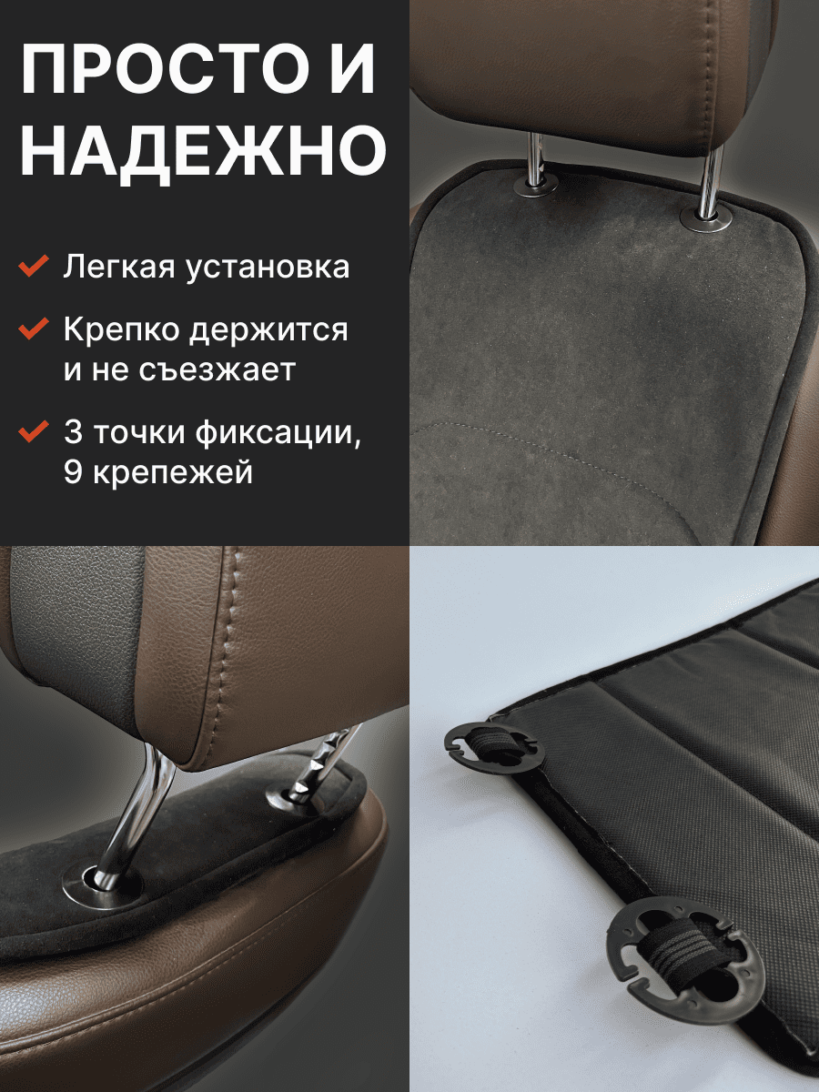 Совместимость: подходит для любых автомобилей. Материал: микровелюр — мягкий, приятный на ощупь, легко чистится, не выгорает. Назначение: защита оригинальной обивки от загрязнений, износа, повреждений. Комфорт зимой и летом. Крепление: надежная фиксация без смещений, простая установка без инструментов, регулирующаяся высота спинки. Безопасность: не мешает срабатыванию боковых подушек безопасности (Airbag). Дизайн: современный внешний вид, улучшает интерьер салона. Уход: легко чистится влажной салфеткой или пылесосом.