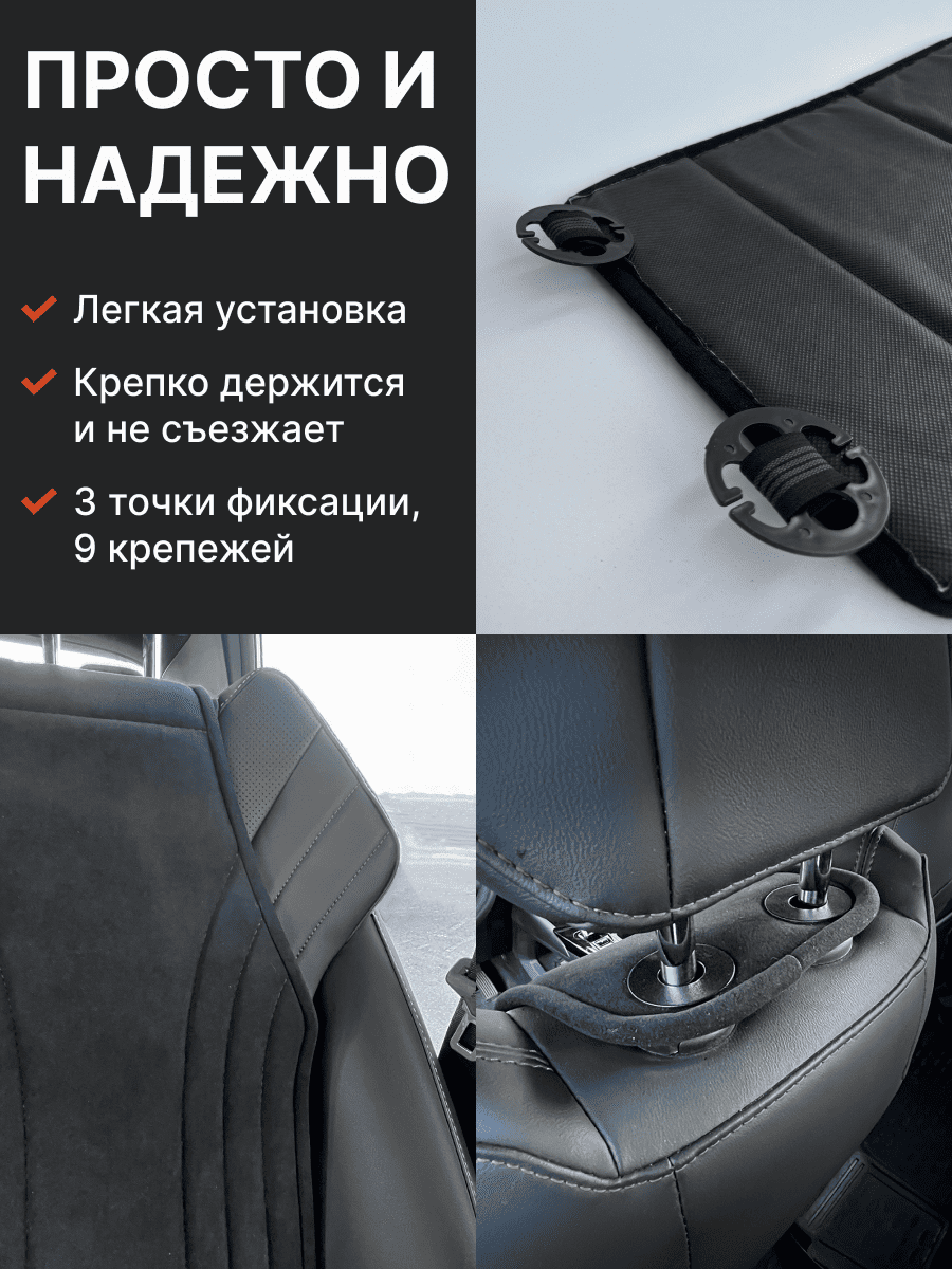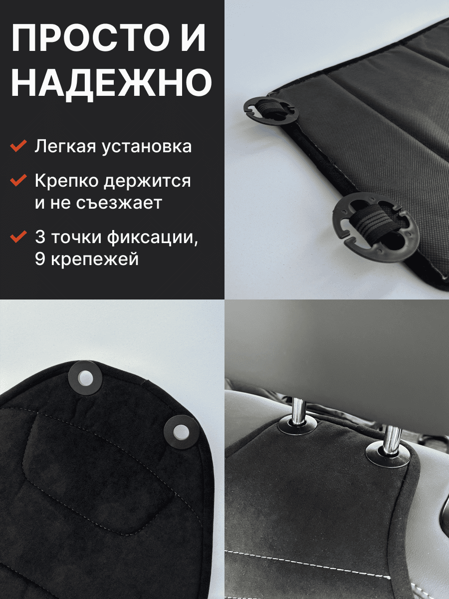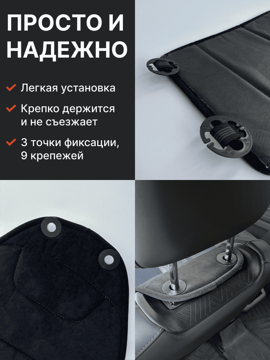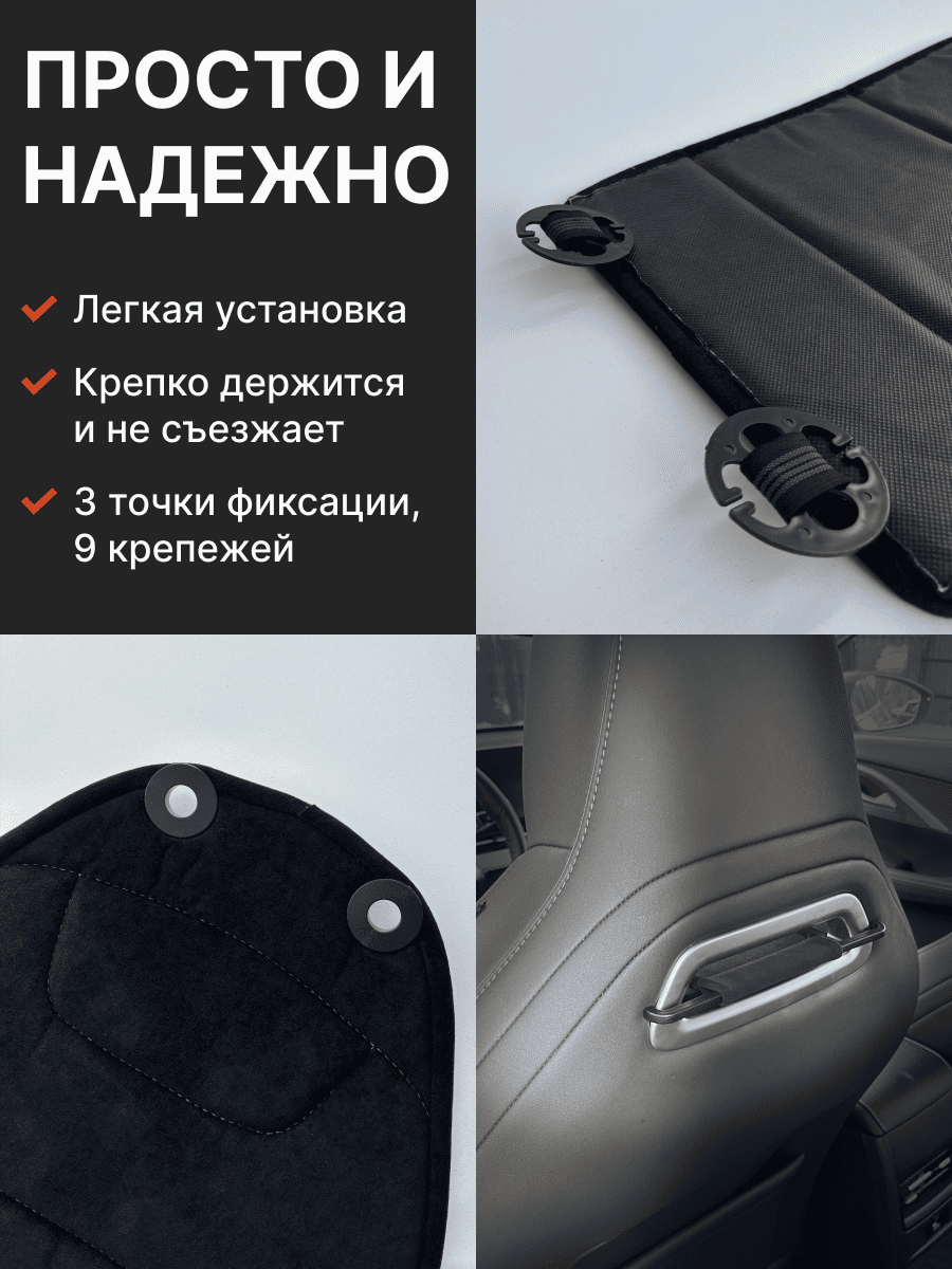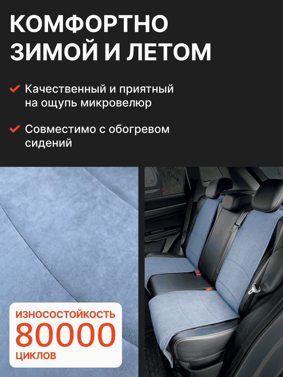Совместимость: подходит для любых автомобилей. Материал: микровелюр — мягкий, приятный на ощупь, легко чистится, не выгорает. Назначение: защита оригинальной обивки от загрязнений, износа, повреждений. Комфорт зимой и летом. Крепление: надежная фиксация без смещений, простая установка без инструментов, регулирующаяся высота спинки. Безопасность: не мешает срабатыванию боковых подушек безопасности (Airbag). Дизайн: современный внешний вид, улучшает интерьер салона. Уход: легко чистится влажной салфеткой или пылесосом.
