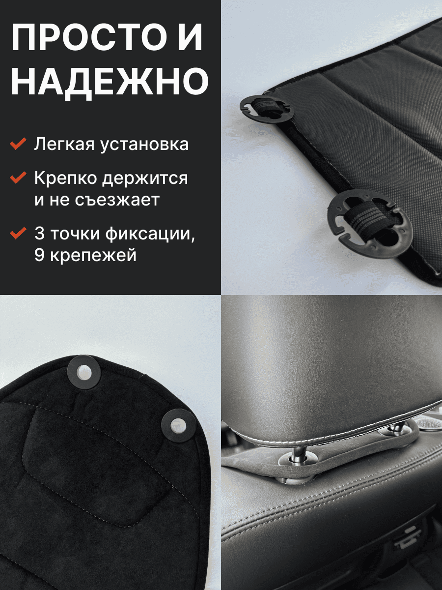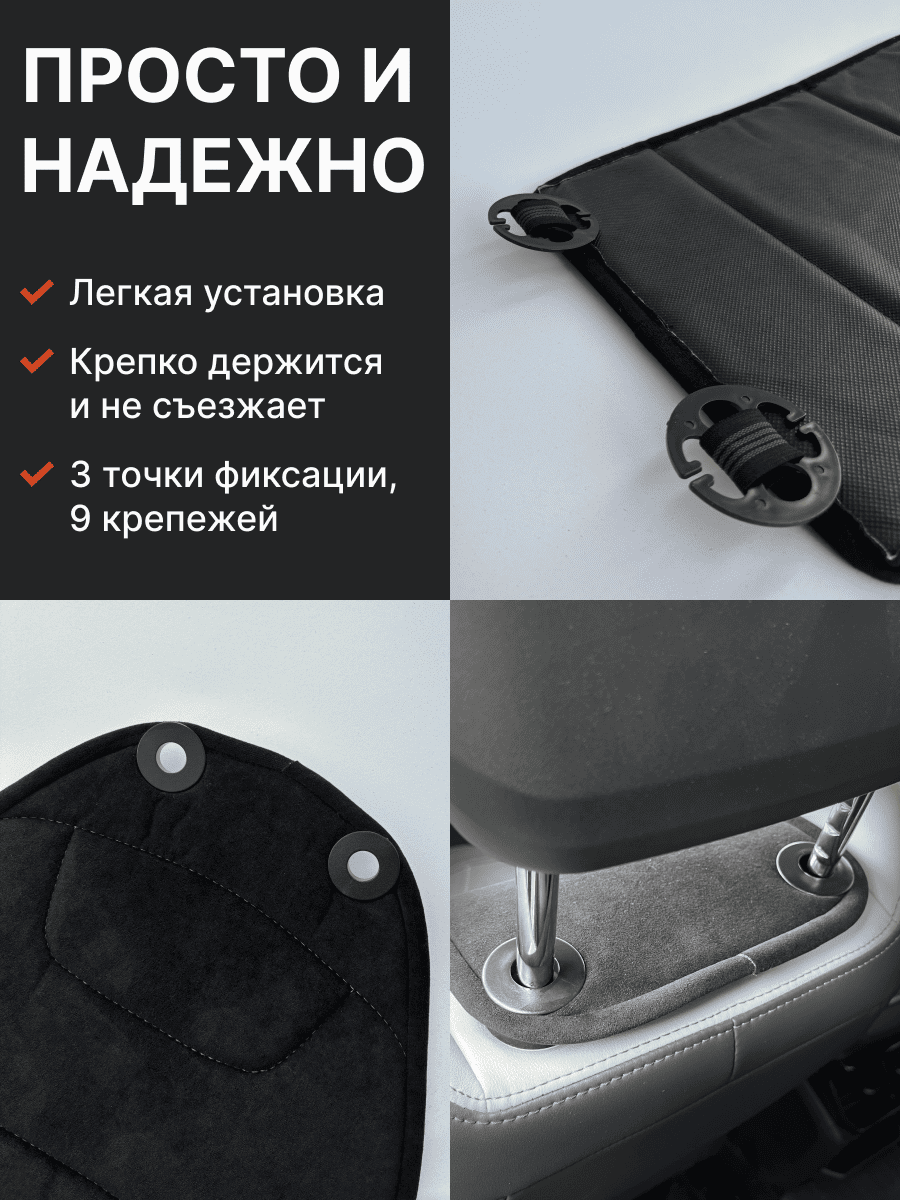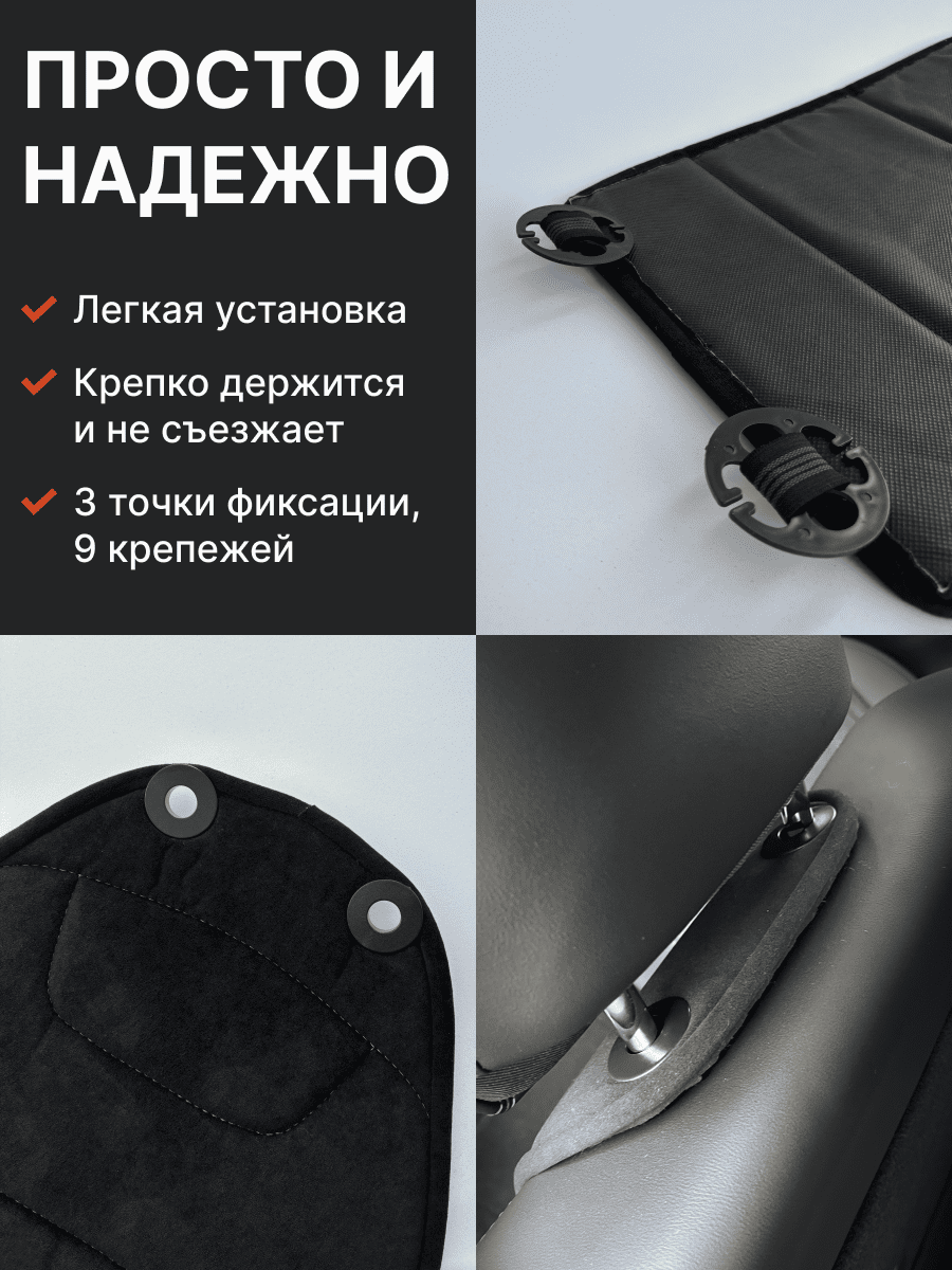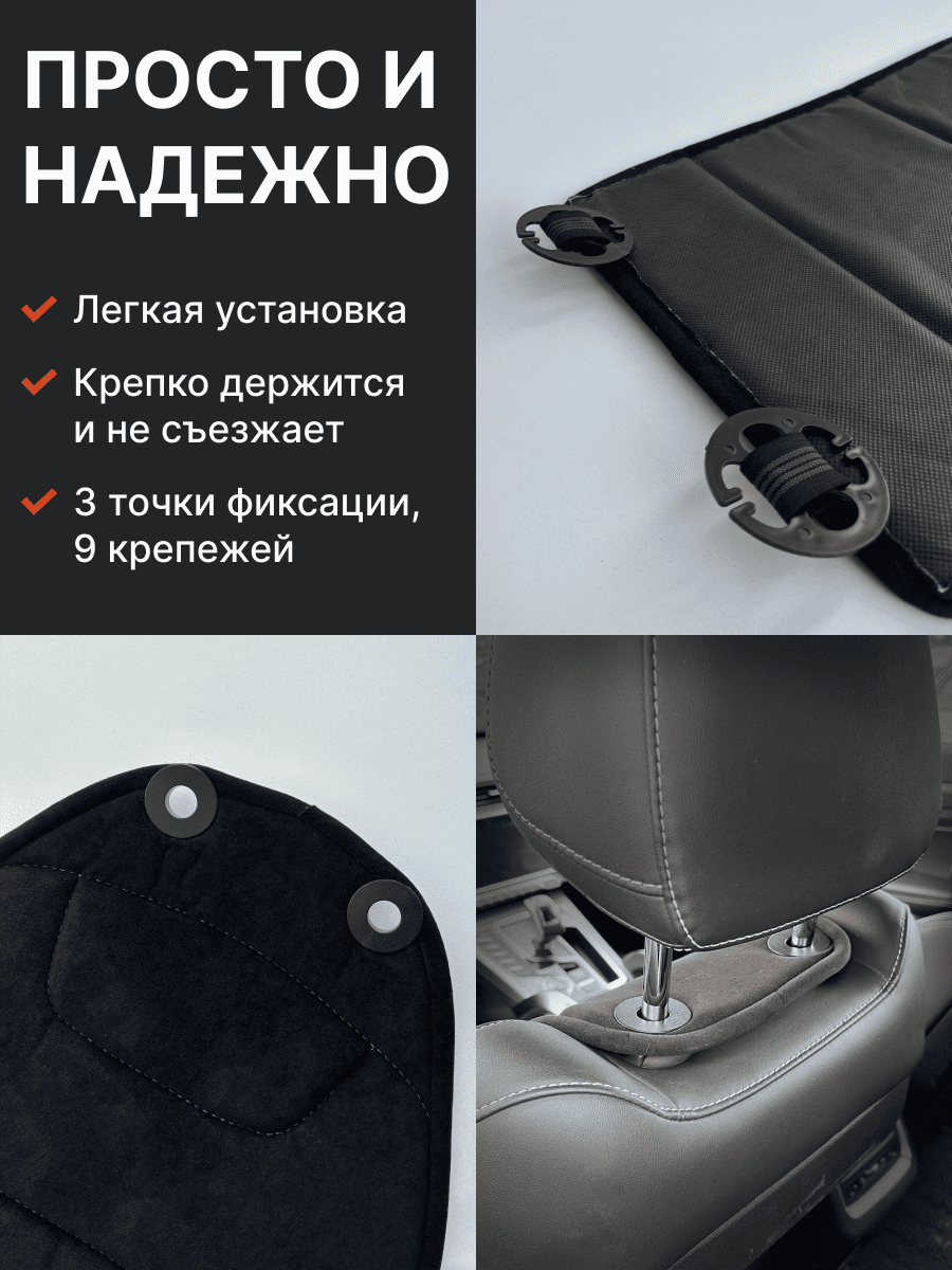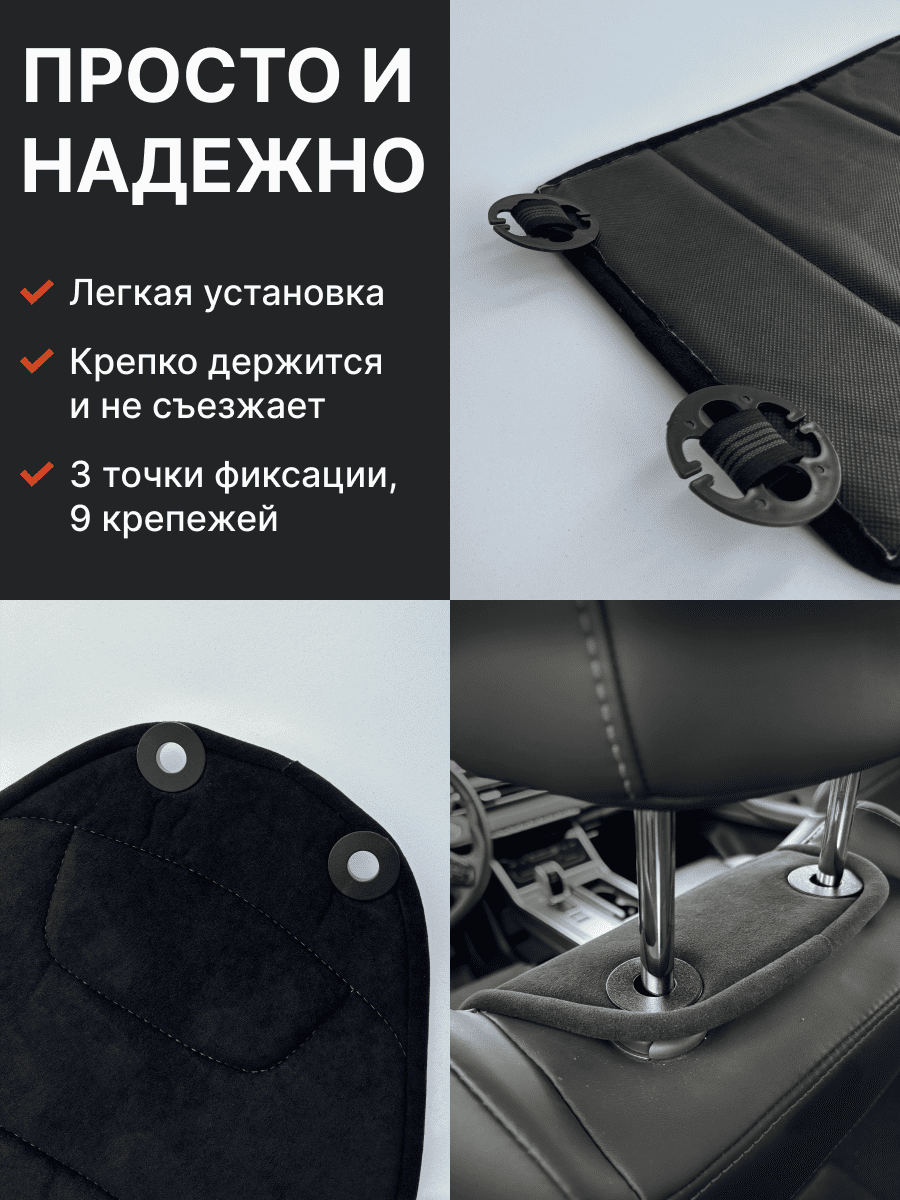 Совместимость: подходит для любых автомобилей. Материал: микровелюр — мягкий, приятный на ощупь, легко чистится, не выгорает. Назначение: защита оригинальной обивки от загрязнений, износа, повреждений. Комфорт зимой и летом. Крепление: надежная фиксация без смещений, простая установка без инструментов, регулирующаяся высота спинки. Безопасность: не мешает срабатыванию боковых подушек безопасности (Airbag). Дизайн: современный внешний вид, улучшает интерьер салона. Уход: легко чистится влажной салфеткой или пылесосом.