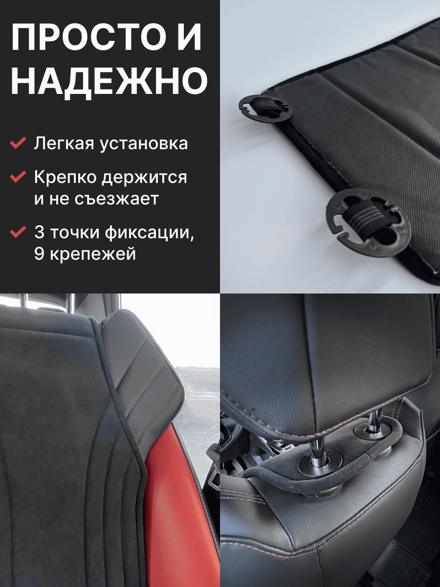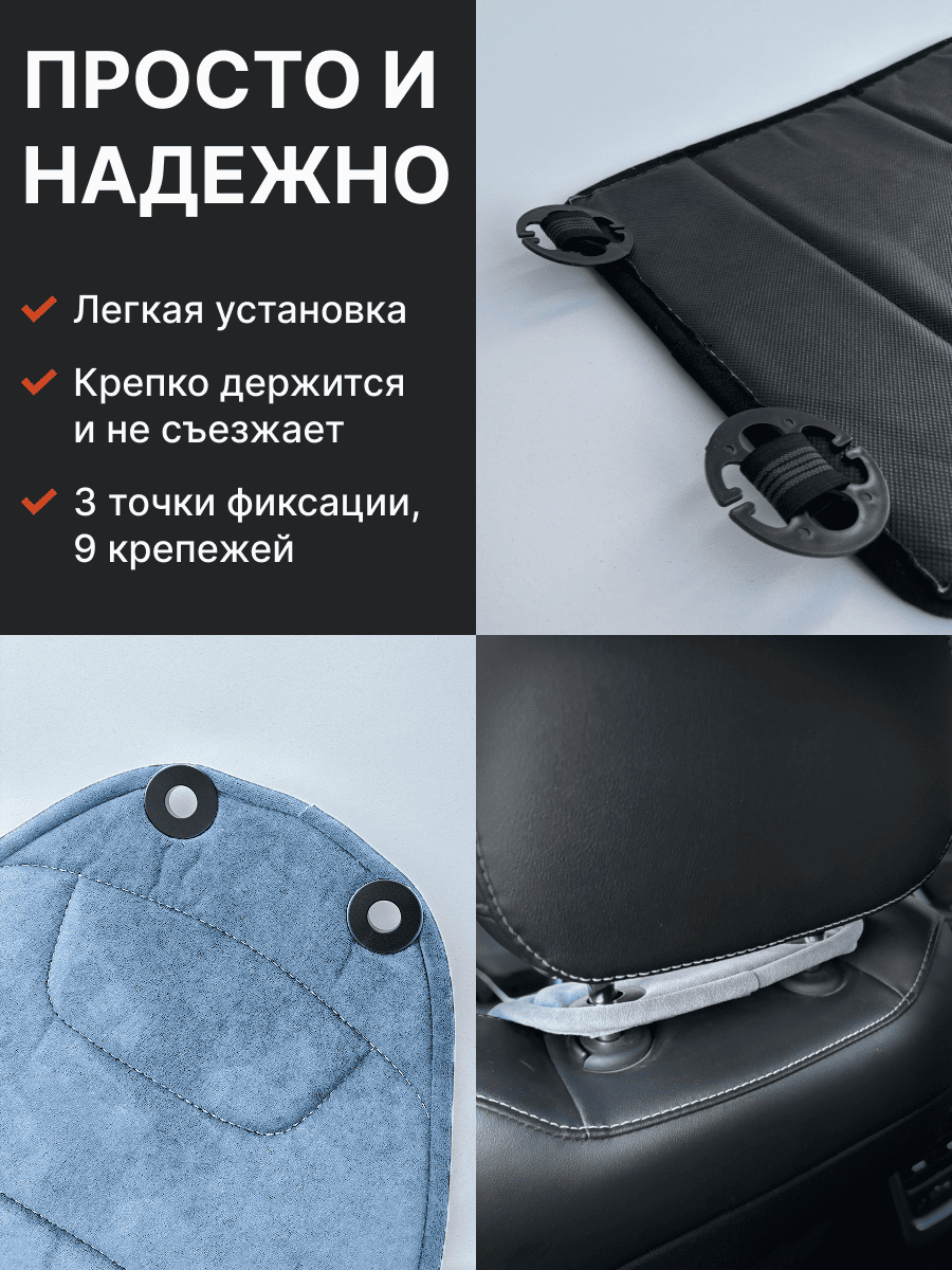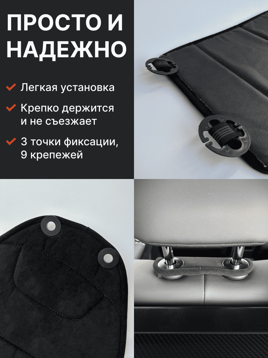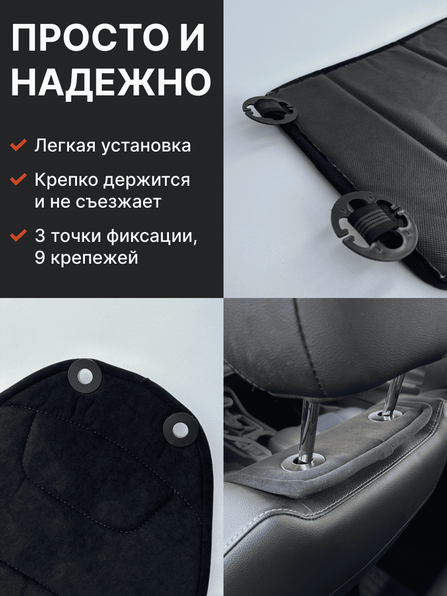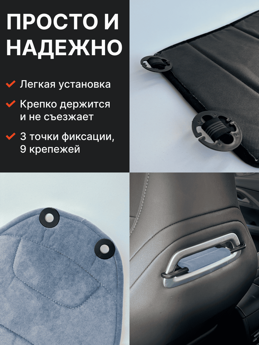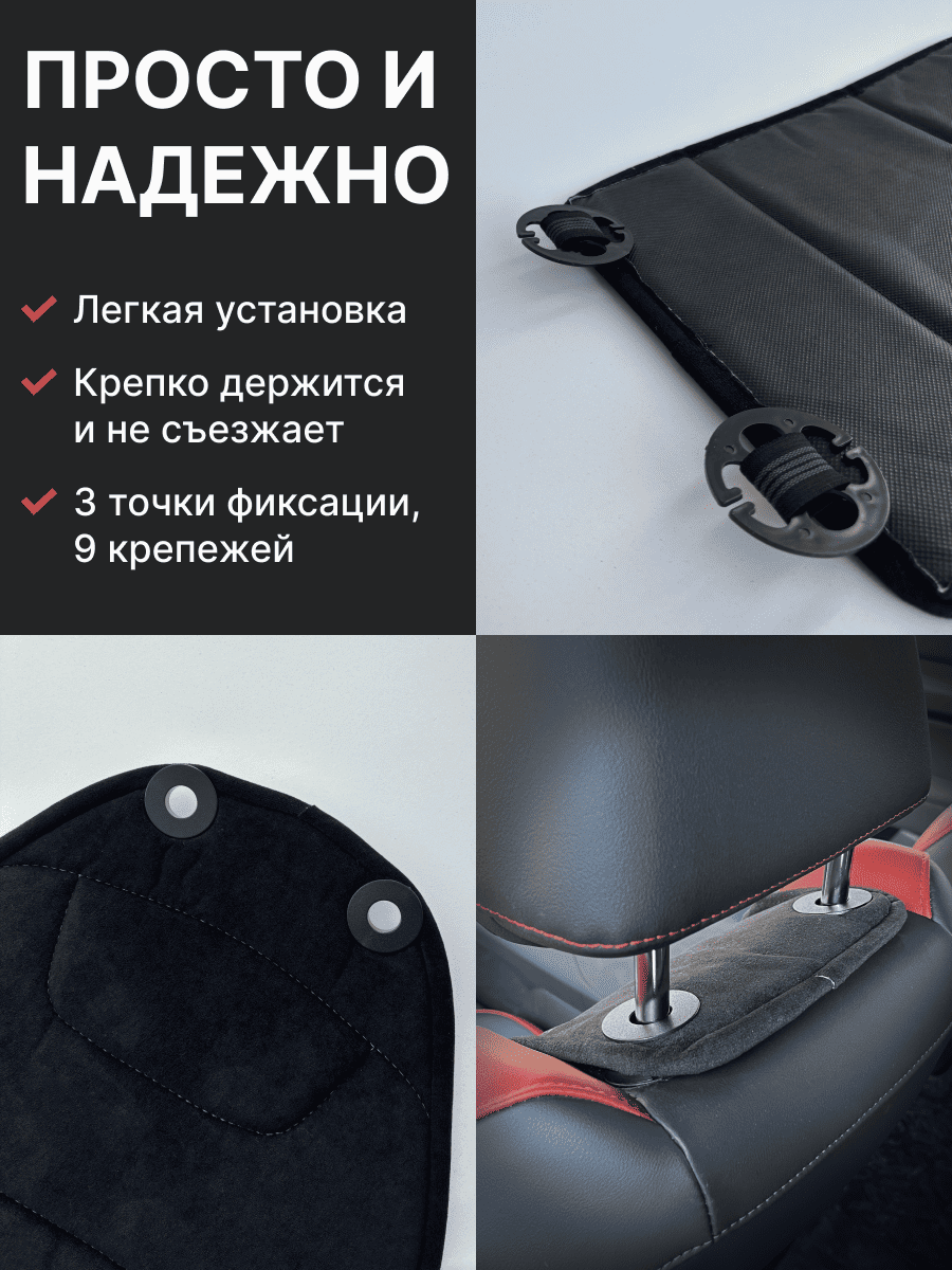 Совместимость: подходит для любых автомобилей. Материал: микровелюр — мягкий, приятный на ощупь, легко чистится, не выгорает. Назначение: защита оригинальной обивки от загрязнений, износа, повреждений. Комфорт зимой и летом. Крепление: надежная фиксация без смещений, простая установка без инструментов, регулирующаяся высота спинки. Безопасность: не мешает срабатыванию боковых подушек безопасности (Airbag). Дизайн: современный внешний вид, улучшает интерьер салона. Уход: легко чистится влажной салфеткой или пылесосом.
