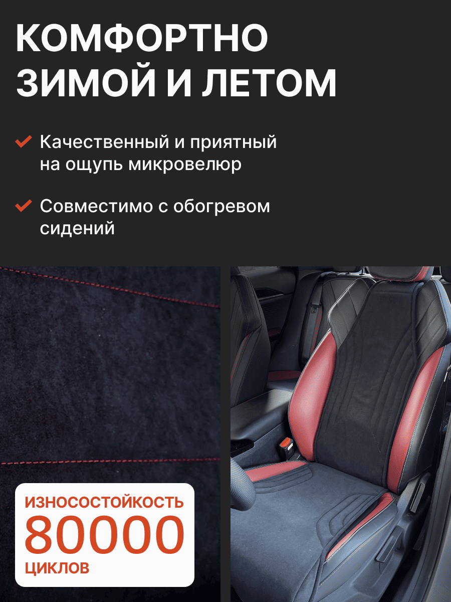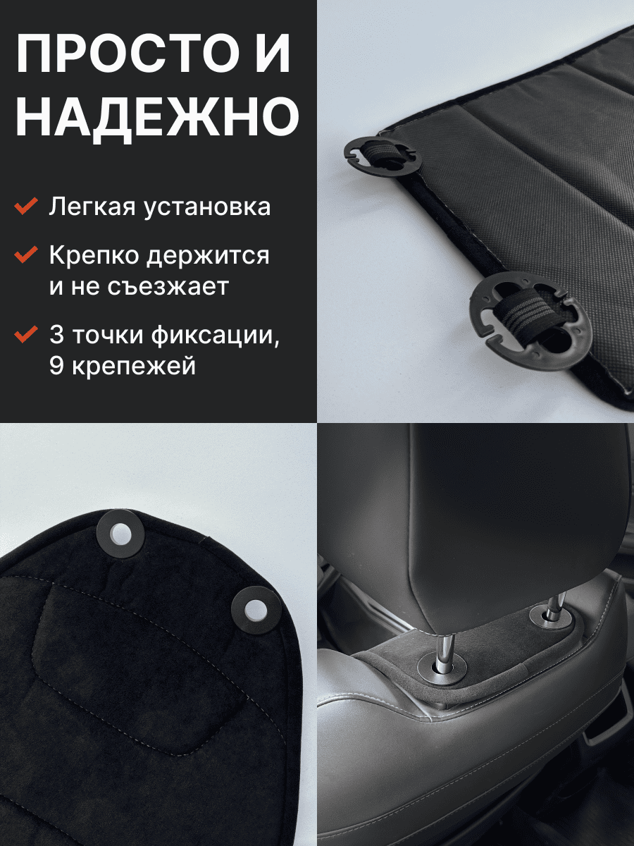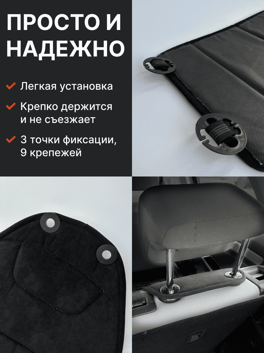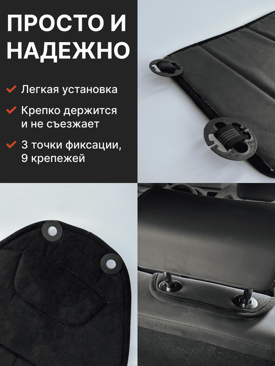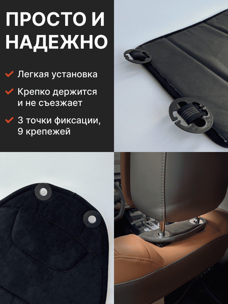 Совместимость: подходит для любых автомобилей. Материал: микровелюр — мягкий, приятный на ощупь, легко чистится, не выгорает. Назначение: защита оригинальной обивки от загрязнений, износа, повреждений. Комфорт зимой и летом. Крепление: надежная фиксация без смещений, простая установка без инструментов, регулирующаяся высота спинки. Безопасность: не мешает срабатыванию боковых подушек безопасности (Airbag). Дизайн: современный внешний вид, улучшает интерьер салона. Уход: легко чистится влажной салфеткой или пылесосом.