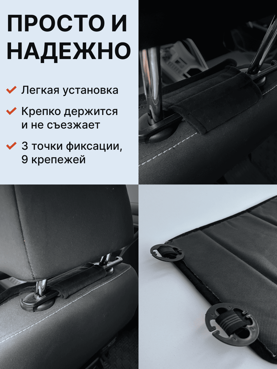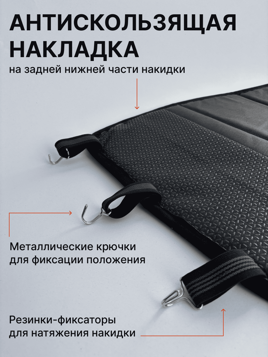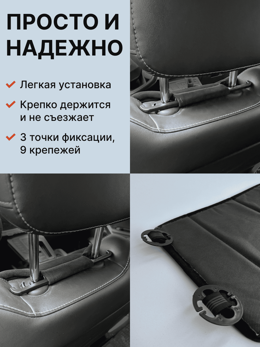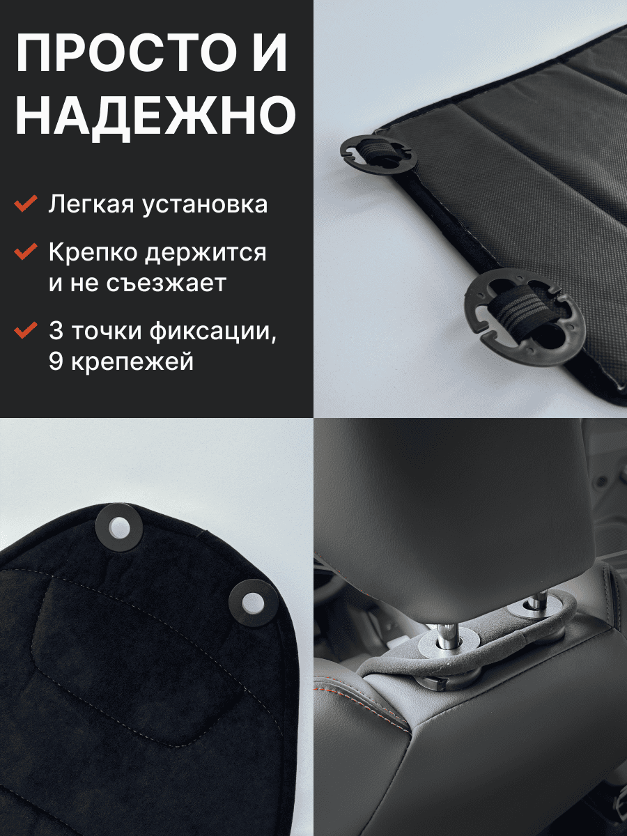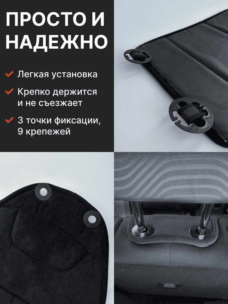 Совместимость: подходит для любых автомобилей. Материал: микровелюр — мягкий, приятный на ощупь, легко чистится, не выгорает. Назначение: защита оригинальной обивки от загрязнений, износа, повреждений. Комфорт зимой и летом. Крепление: надежная фиксация без смещений, простая установка без инструментов, регулирующаяся высота спинки. Безопасность: не мешает срабатыванию боковых подушек безопасности (Airbag). Дизайн: современный внешний вид, улучшает интерьер салона. Уход: легко чистится влажной салфеткой или пылесосом.