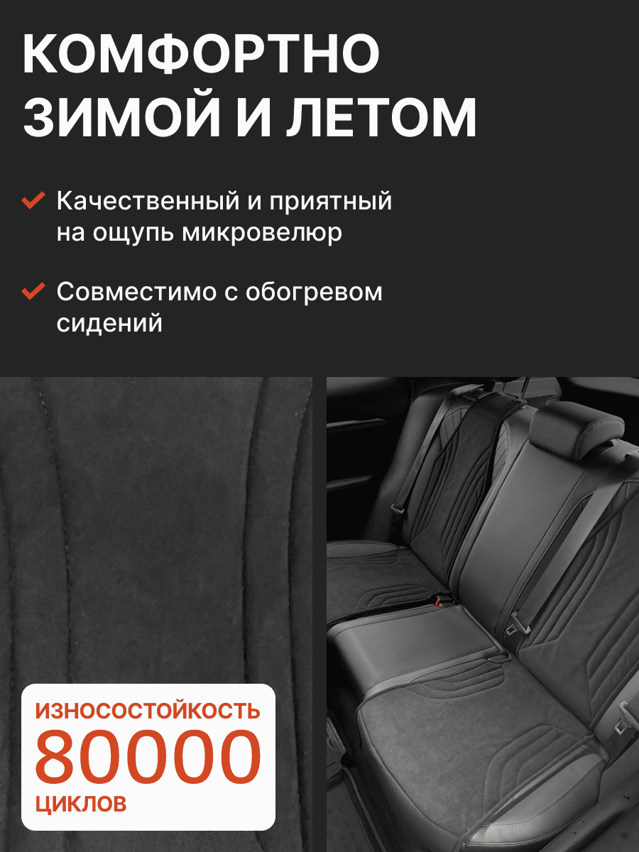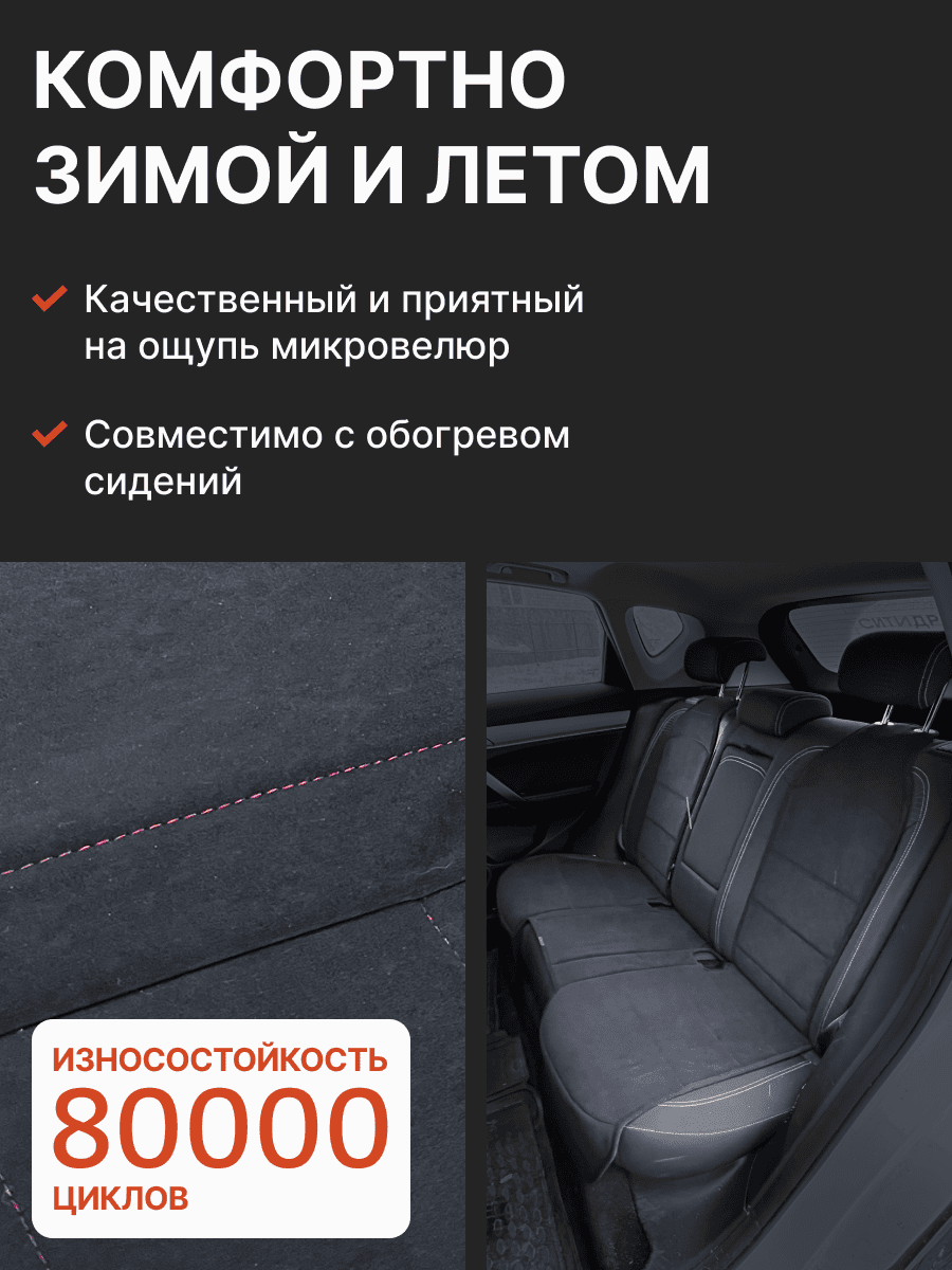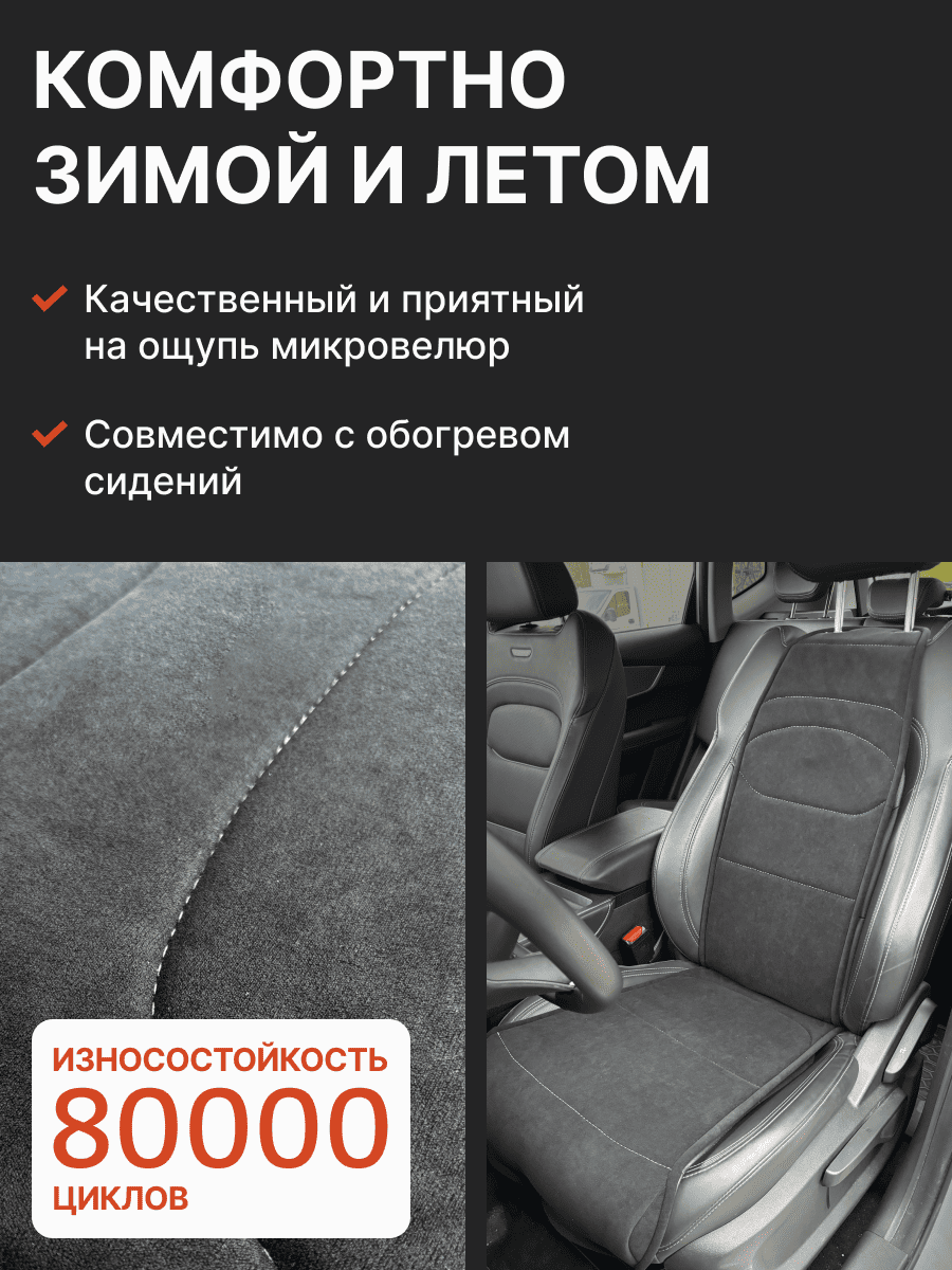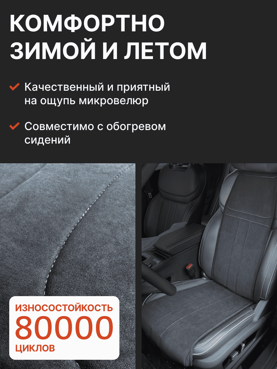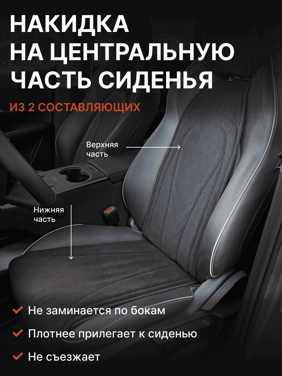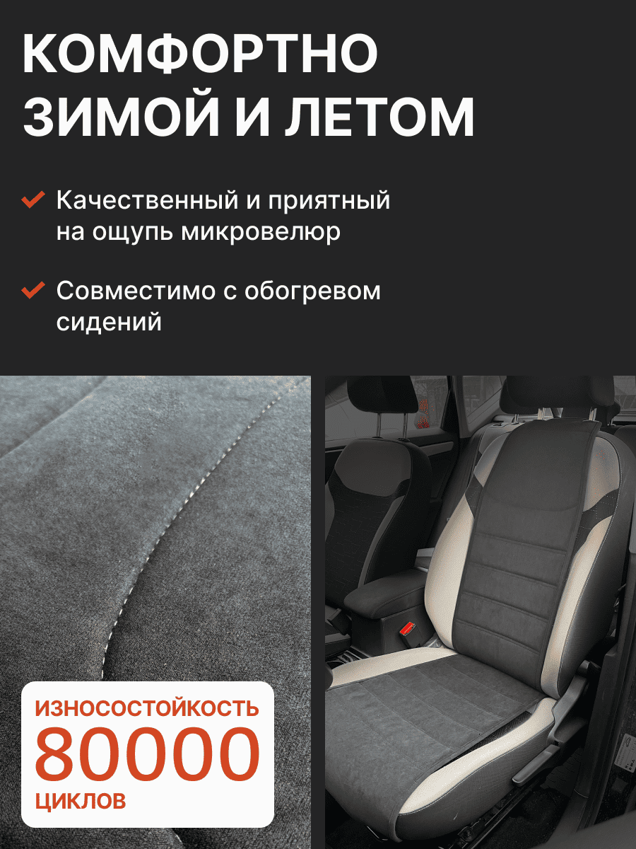 Совместимость: подходит для Haval F7/F7x (2 поколение) (2024, 2025). Материал: микровелюр — мягкий, приятный на ощупь, легко чистится, не выгорает. Назначение: защита оригинальной обивки от загрязнений, износа, повреждений. Комфорт зимой и летом. Крепление: надежная фиксация без смещений, простая установка без инструментов. Безопасность: не мешает срабатыванию боковых подушек безопасности (Airbag). Дизайн: современный внешний вид, улучшает интерьер салона. Уход: легко чистится влажной салфеткой или пылесосом.