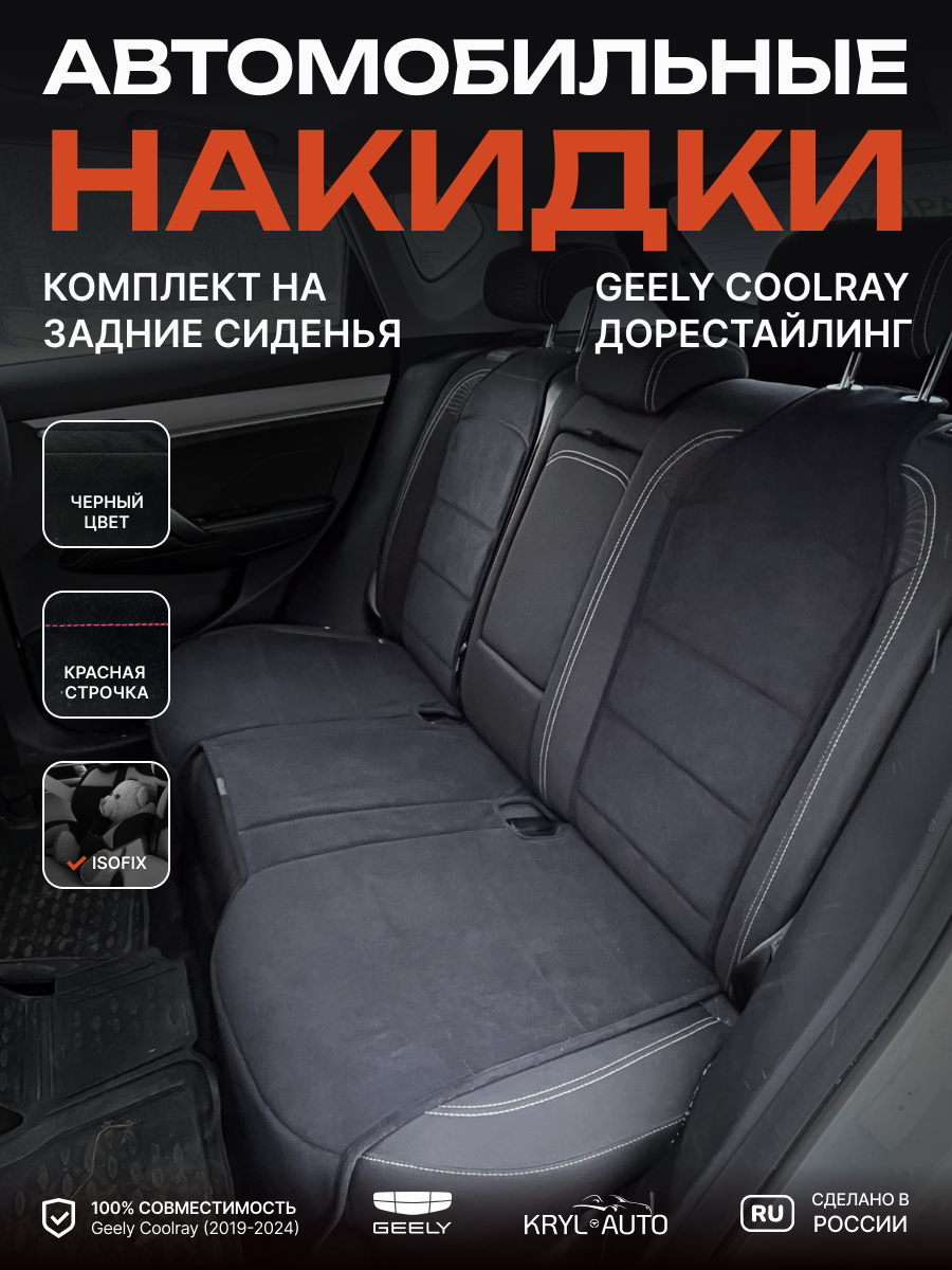 Комплект накидок на задний ряд Geely Coolray дорестайлинг (2019-2024), целиковый диван, черная с красной нитью
