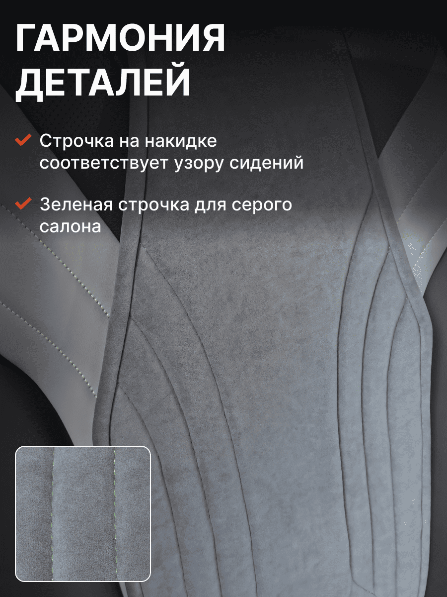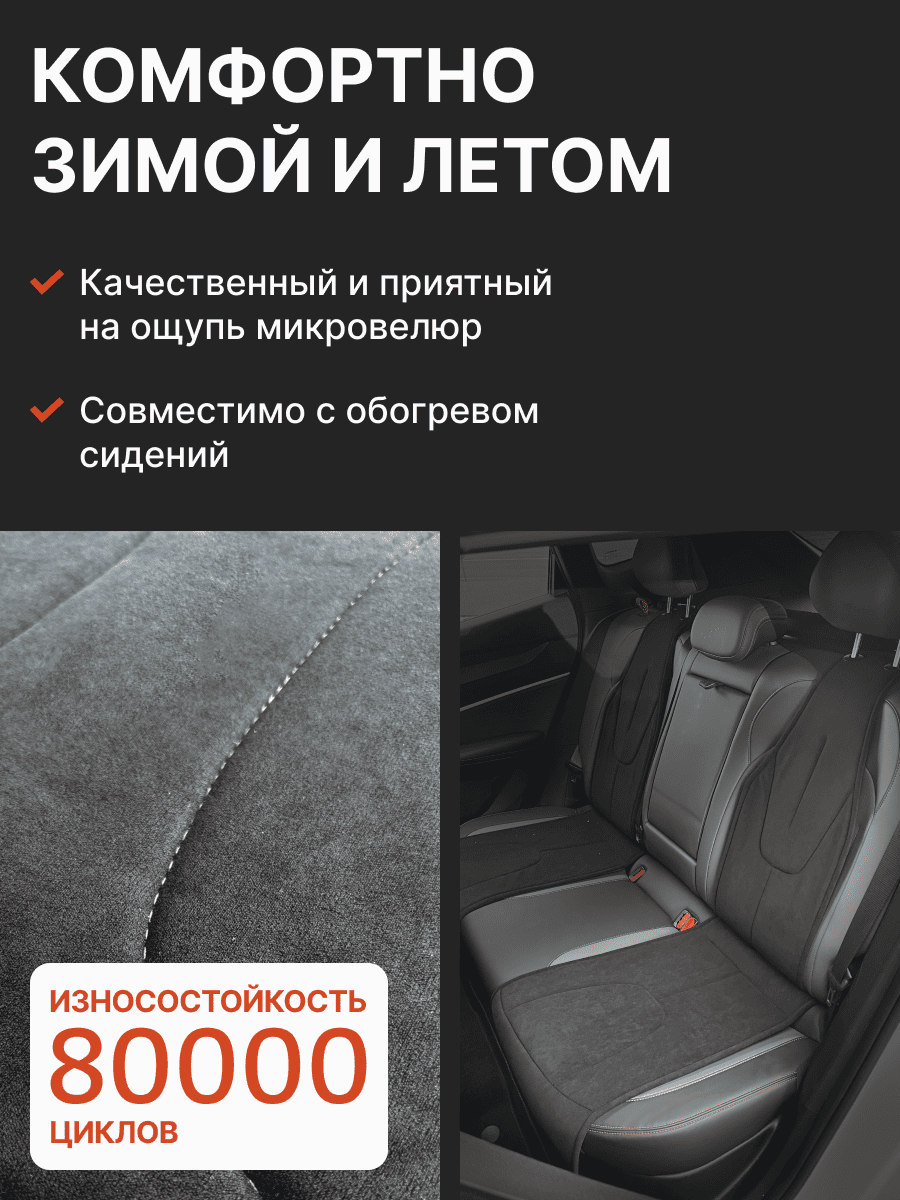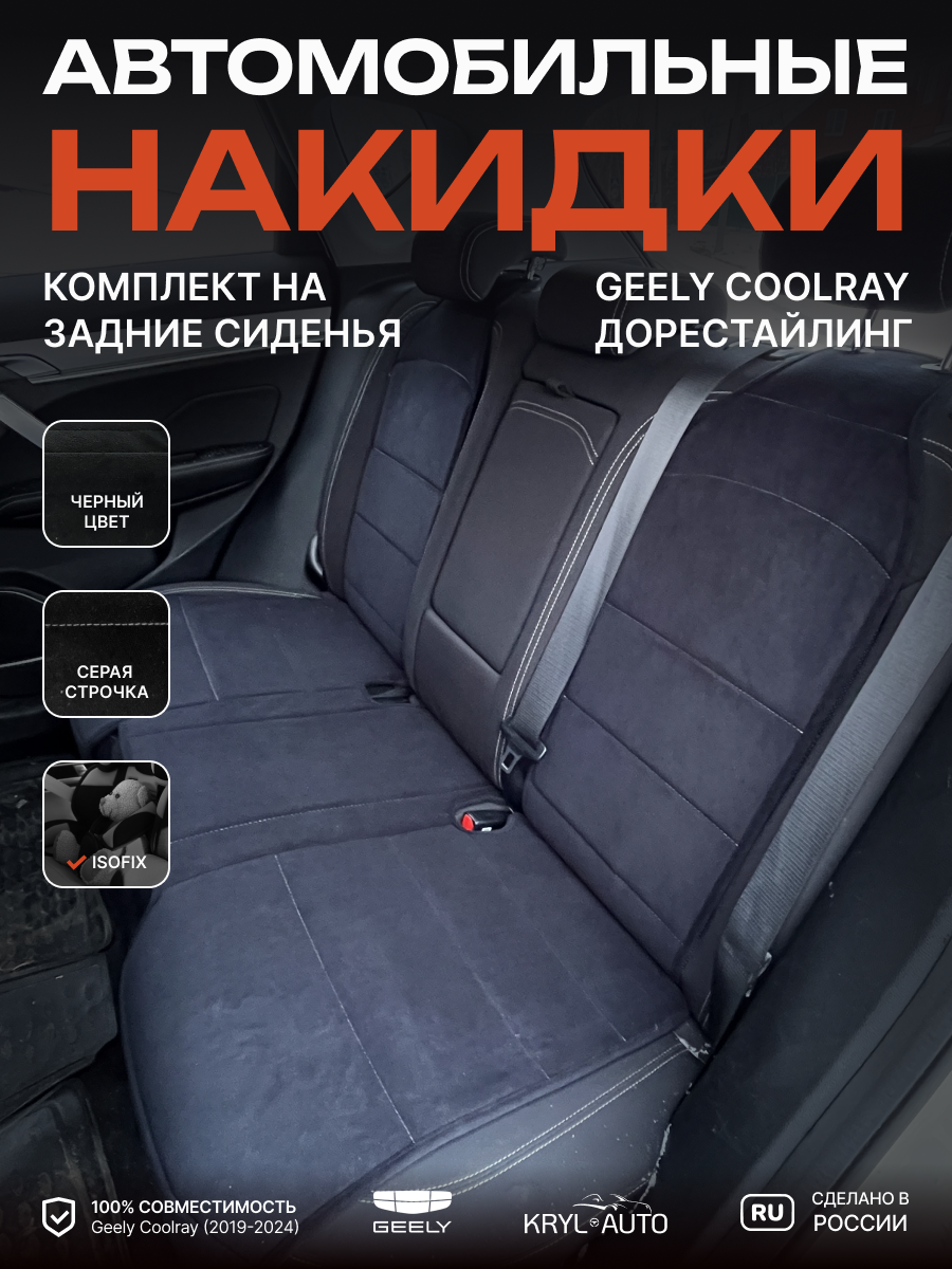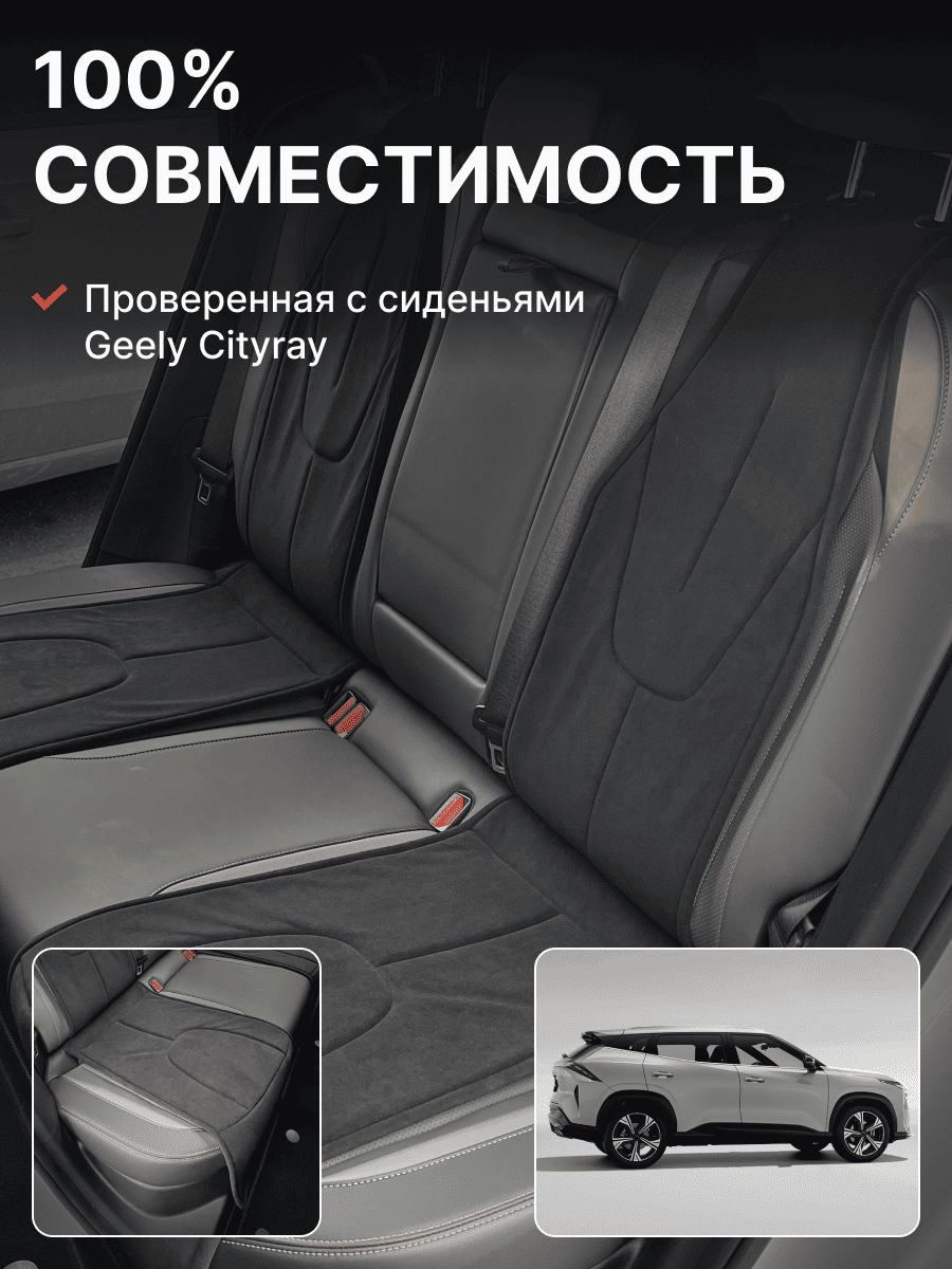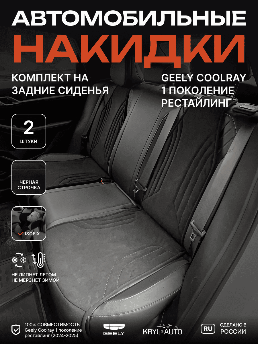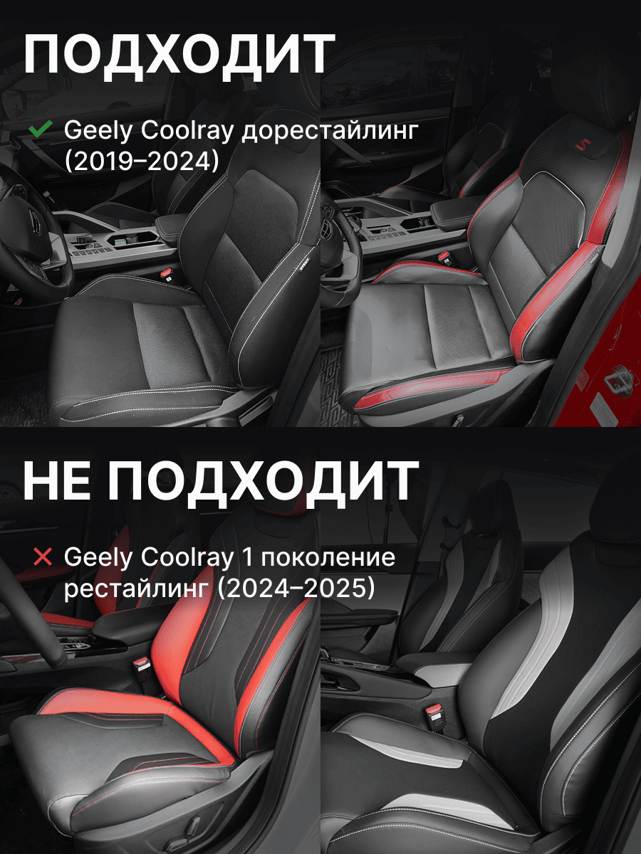 Совместимость: подходит для Geely Coolray (1 gen) рестайлинг (2024, 2025). Материал: микровелюр — мягкий, приятный на ощупь, легко чистится, не выгорает. Назначение: защита оригинальной обивки от загрязнений, износа, повреждений. Комфорт зимой и летом. Крепление: надежная фиксация без смещений, простая установка без инструментов. Безопасность: не мешает срабатыванию боковых подушек безопасности (Airbag). Дизайн: современный внешний вид, улучшает интерьер салона. Уход: легко чистится влажной салфеткой или пылесосом.