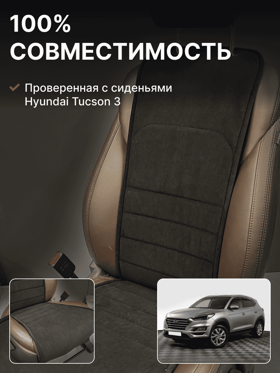 Совместимость: подходит для Hyundai Tucson 3. Материал: микровелюр — мягкий, приятный на ощупь, легко чистится, не выгорает. Назначение: защита оригинальной обивки от загрязнений, износа, повреждений. Комфорт зимой и летом. Крепление: надежная фиксация без смещений, простая установка без инструментов. Безопасность: не мешает срабатыванию боковых подушек безопасности (Airbag). Дизайн: современный внешний вид, улучшает интерьер салона. Уход: легко чистится влажной салфеткой или пылесосом.
