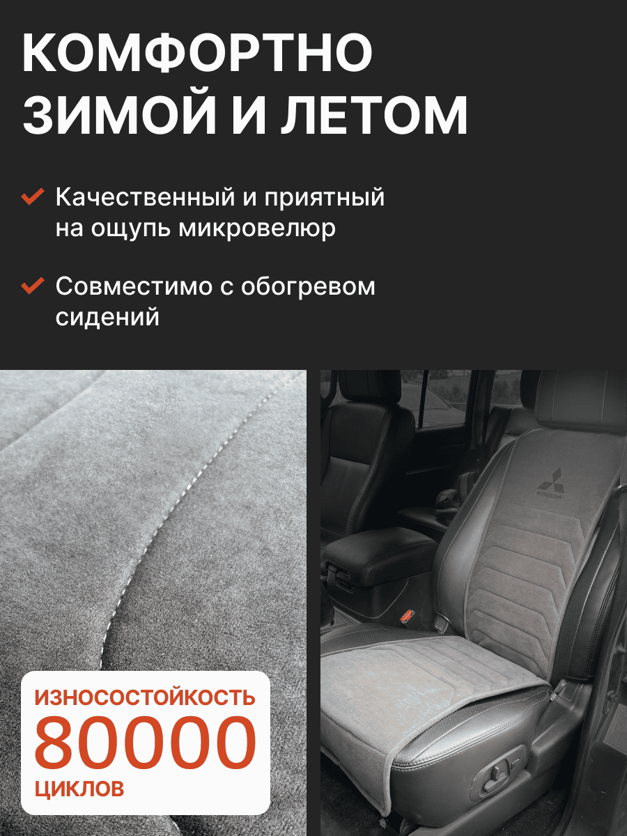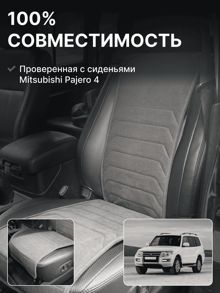 Совместимость: подходит для Mitsubishi Pajero 4. Материал: микровелюр — мягкий, приятный на ощупь, легко чистится, не выгорает. Назначение: защита оригинальной обивки от загрязнений, износа, повреждений. Комфорт зимой и летом. Крепление: надежная фиксация без смещений, простая установка без инструментов. Безопасность: не мешает срабатыванию боковых подушек безопасности (Airbag). Дизайн: современный внешний вид, улучшает интерьер салона. Уход: легко чистится влажной салфеткой или пылесосом.