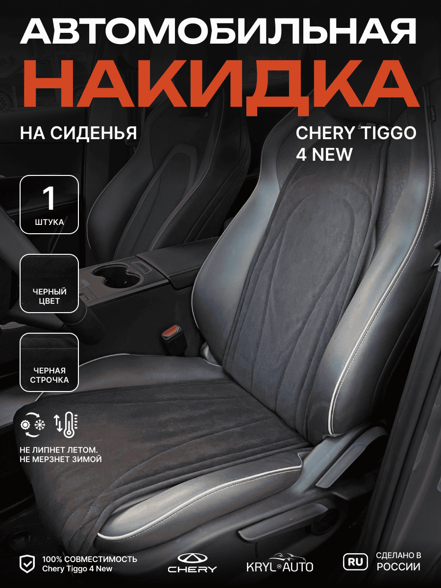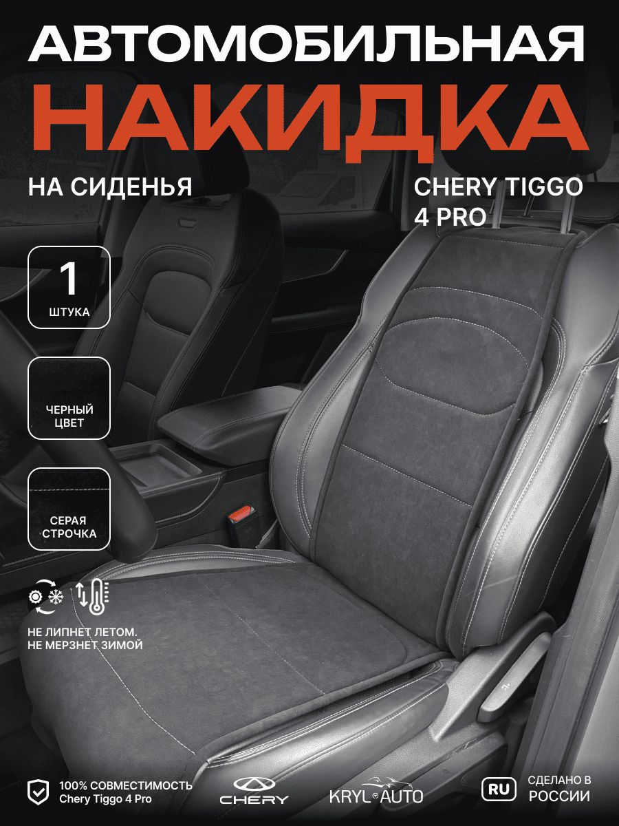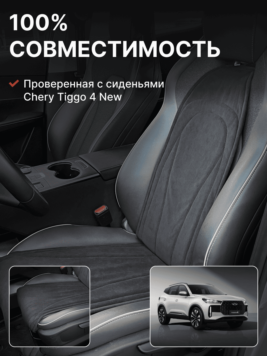 Совместимость: подходит для Chery Tiggo 4 NEW (2024, 2025). Материал: микровелюр — мягкий, приятный на ощупь, легко чистится, не выгорает. Назначение: защита оригинальной обивки от загрязнений, износа, повреждений. Комфорт зимой и летом. Крепление: надежная фиксация без смещений, простая установка без инструментов. Безопасность: не мешает срабатыванию боковых подушек безопасности (Airbag). Дизайн: современный внешний вид, улучшает интерьер салона. Уход: легко чистится влажной салфеткой или пылесосом.