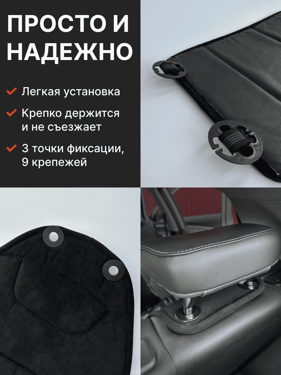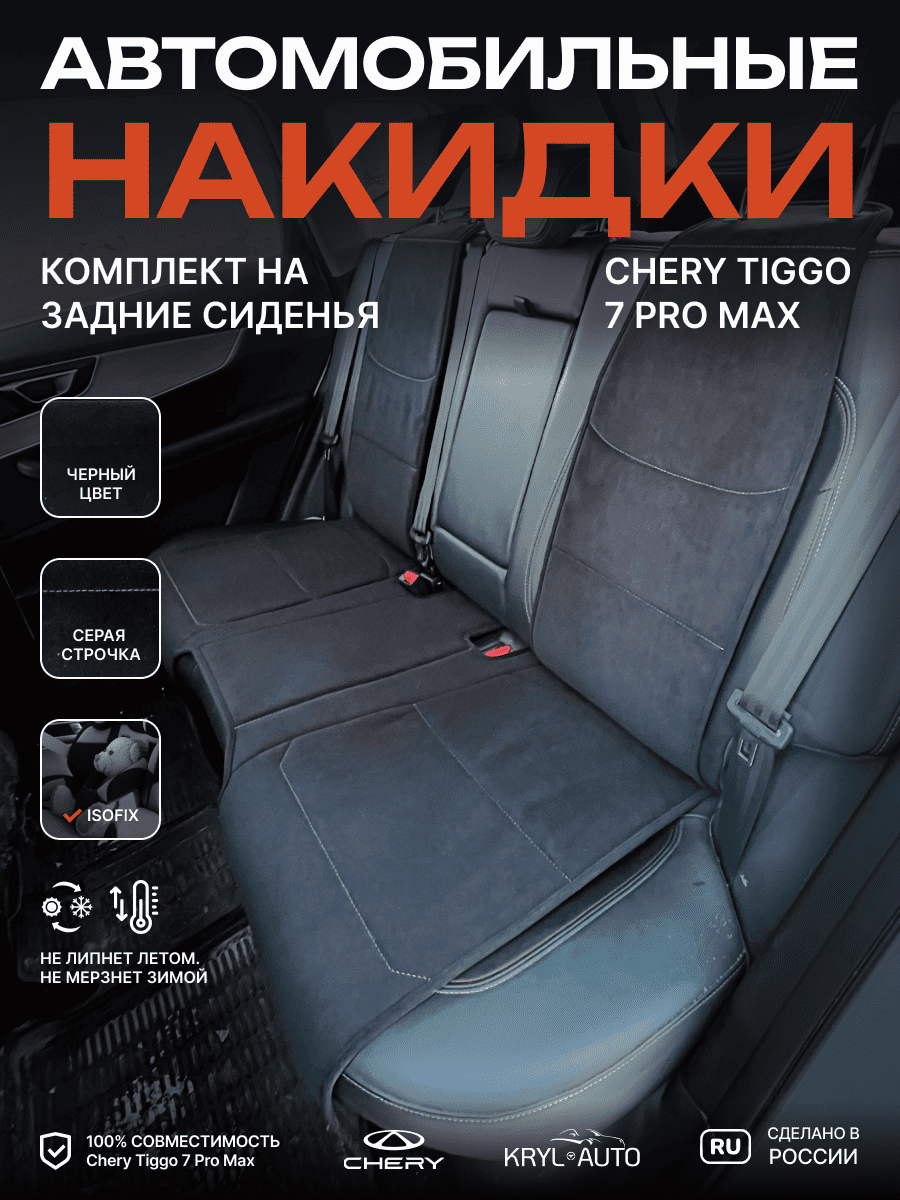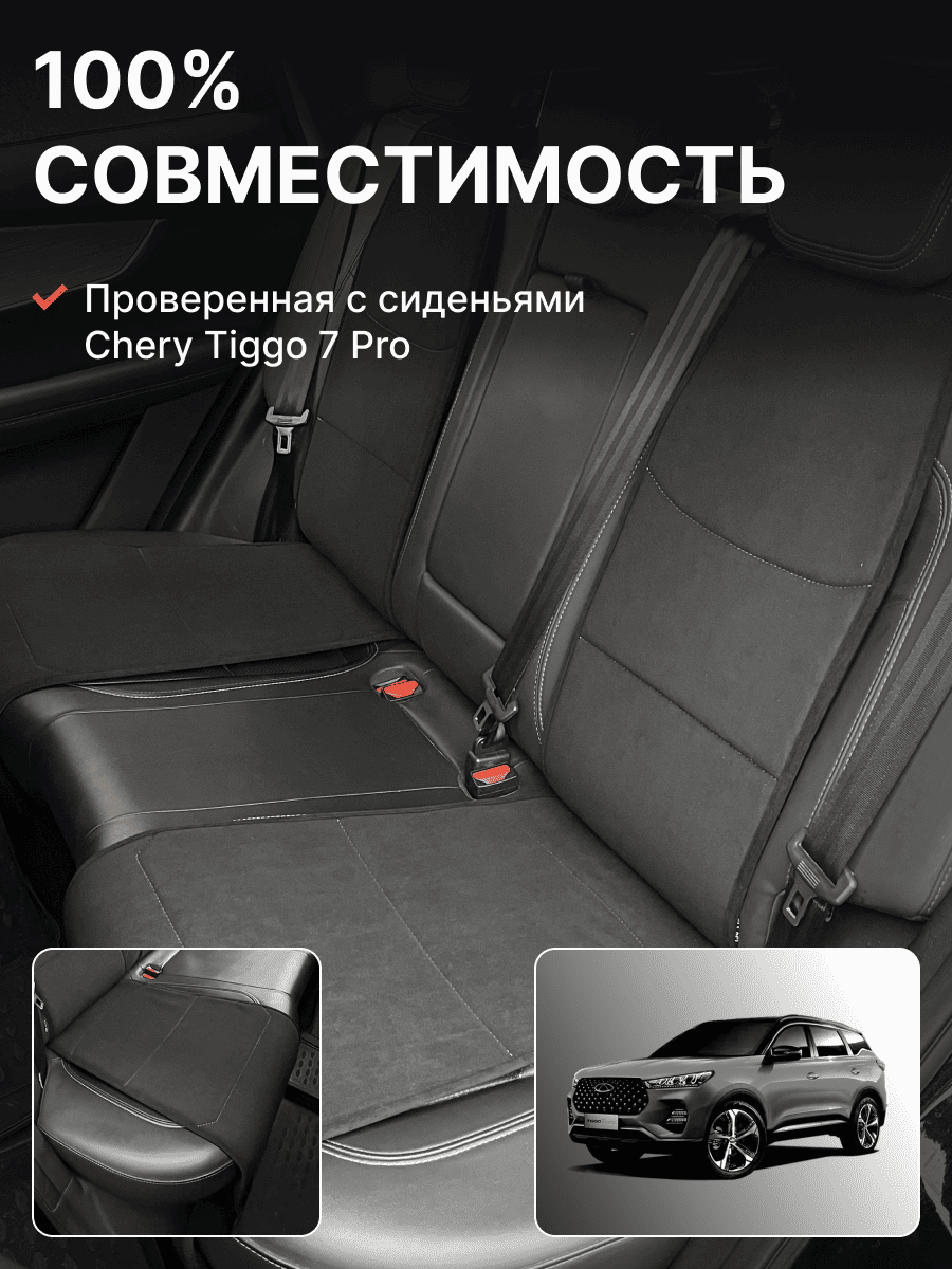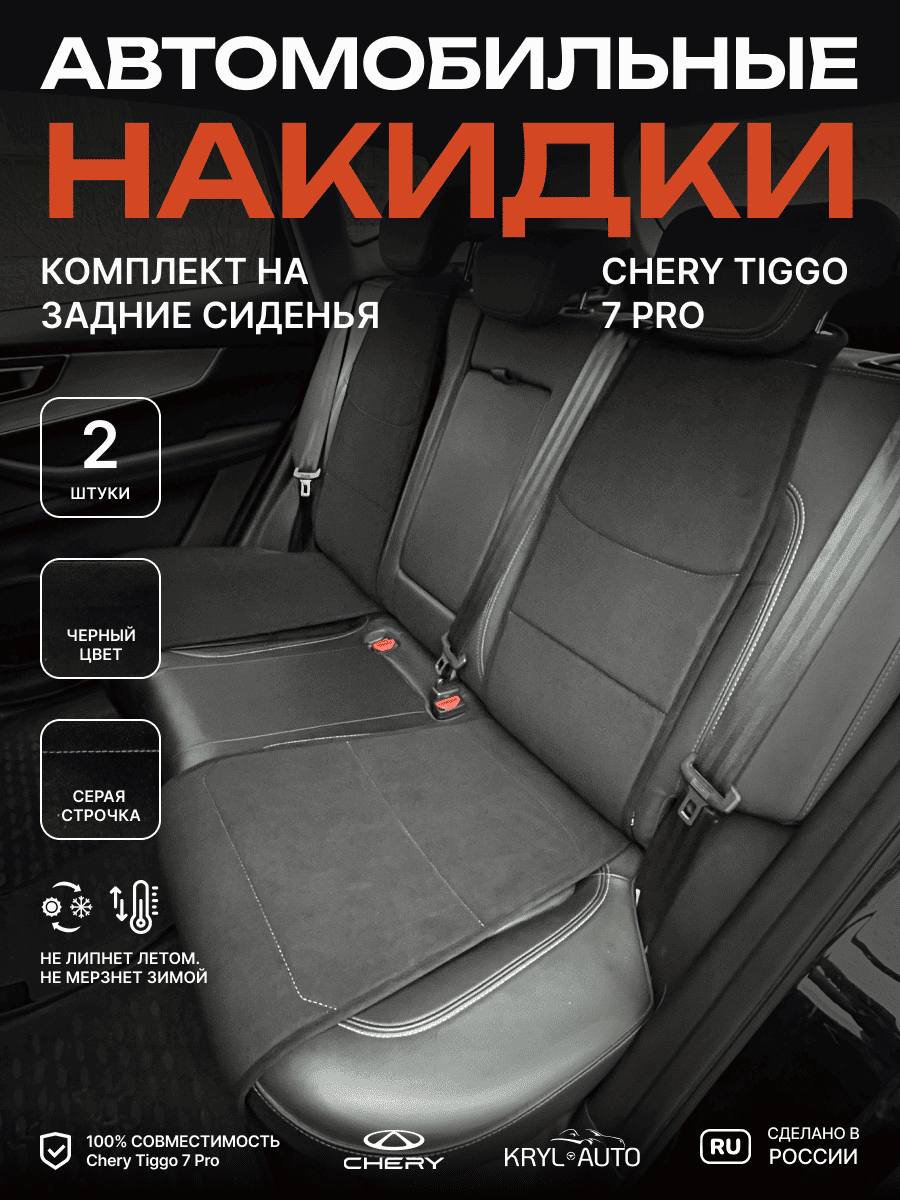 Совместимость: подходит для Chery Tiggo 4 NEW (2024, 2025). Материал: микровелюр — мягкий, приятный на ощупь, легко чистится, не выгорает. Назначение: защита оригинальной обивки от загрязнений, износа, повреждений. Комфорт зимой и летом. Крепление: надежная фиксация без смещений, простая установка без инструментов. Безопасность: не мешает срабатыванию боковых подушек безопасности (Airbag). Дизайн: современный внешний вид, улучшает интерьер салона. Уход: легко чистится влажной салфеткой или пылесосом.