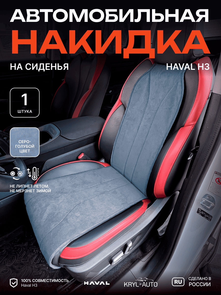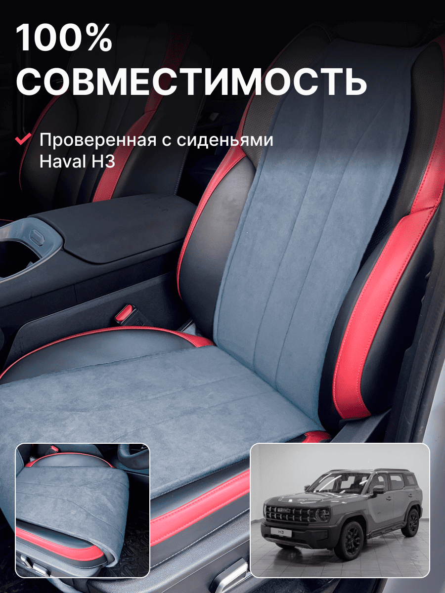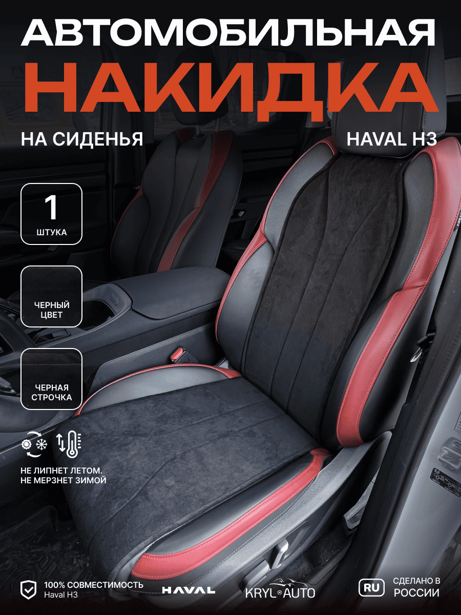 Совместимость: подходит для Haval H3 (2024, 2025). Материал: микровелюр — мягкий, приятный на ощупь, легко чистится, не выгорает. Назначение: защита оригинальной обивки от загрязнений, износа, повреждений. Комфорт зимой и летом. Крепление: надежная фиксация без смещений, простая установка без инструментов. Безопасность: не мешает срабатыванию боковых подушек безопасности (Airbag). Дизайн: современный внешний вид, улучшает интерьер салона. Уход: легко чистится влажной салфеткой или пылесосом.