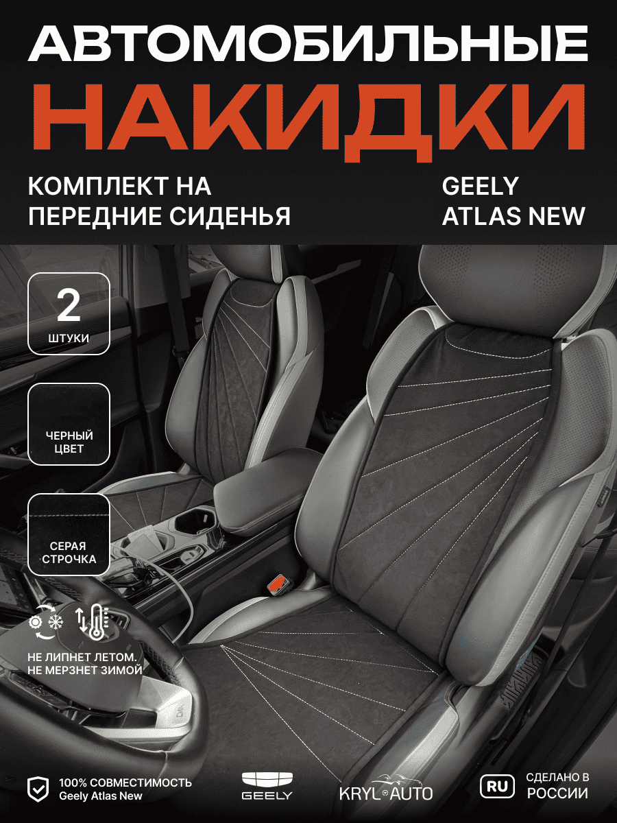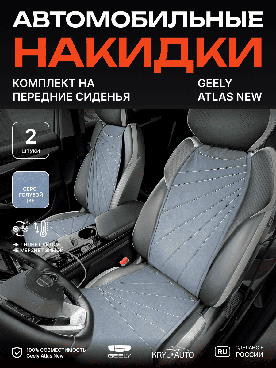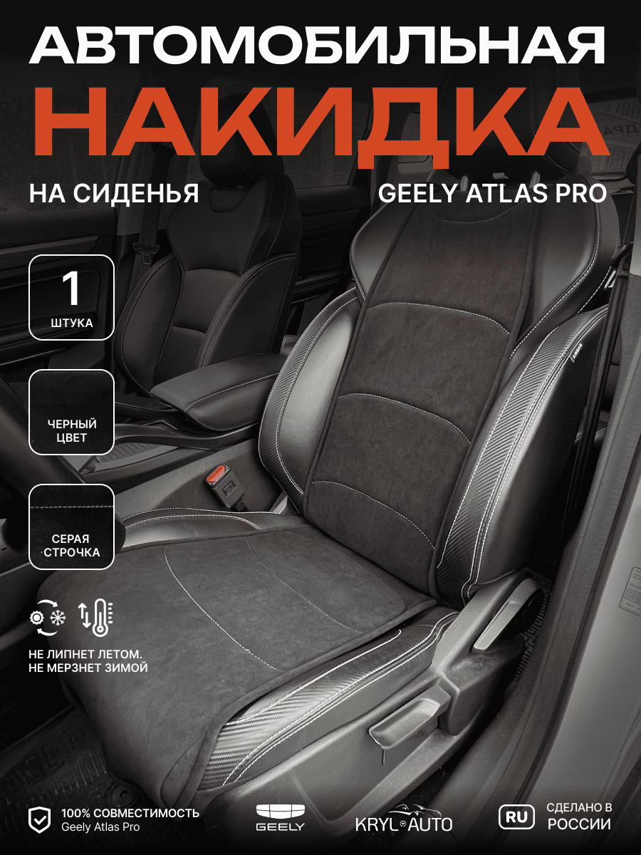 Совместимость: подходит для Geely Atlas New. Материал: микровелюр — мягкий, приятный на ощупь, легко чистится, не выгорает. Назначение: защита оригинальной обивки от загрязнений, износа, повреждений. Комфорт зимой и летом. Крепление: надежная фиксация без смещений, простая установка без инструментов. Безопасность: не мешает срабатыванию боковых подушек безопасности (Airbag). Дизайн: современный внешний вид, улучшает интерьер салона. Уход: легко чистится влажной салфеткой или пылесосом.