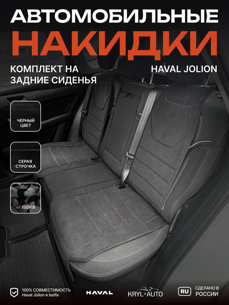 Комплект накидок на задний ряд для Haval Jolion (2021-2025), целиковый диван, черный, 2 шт.
