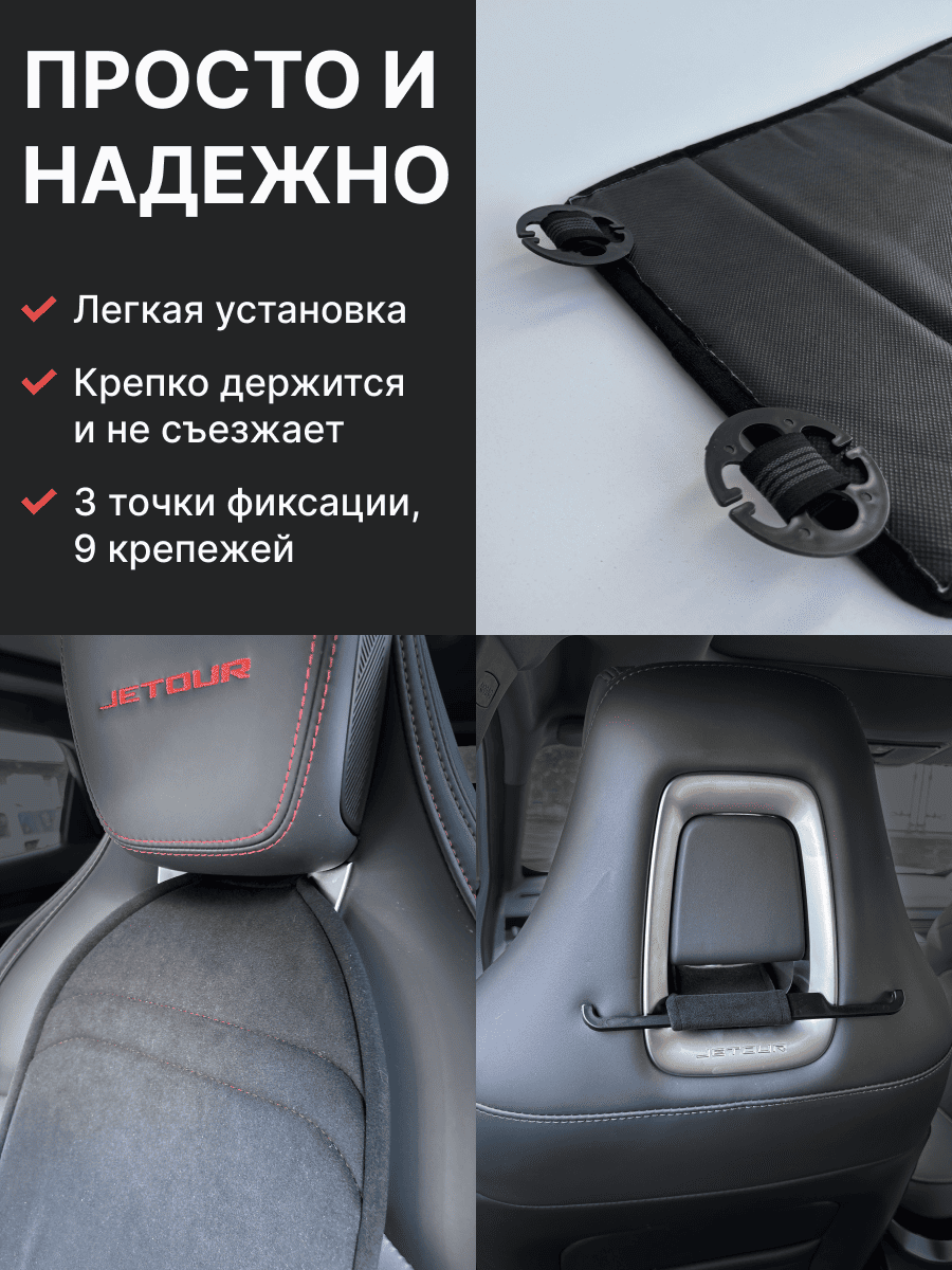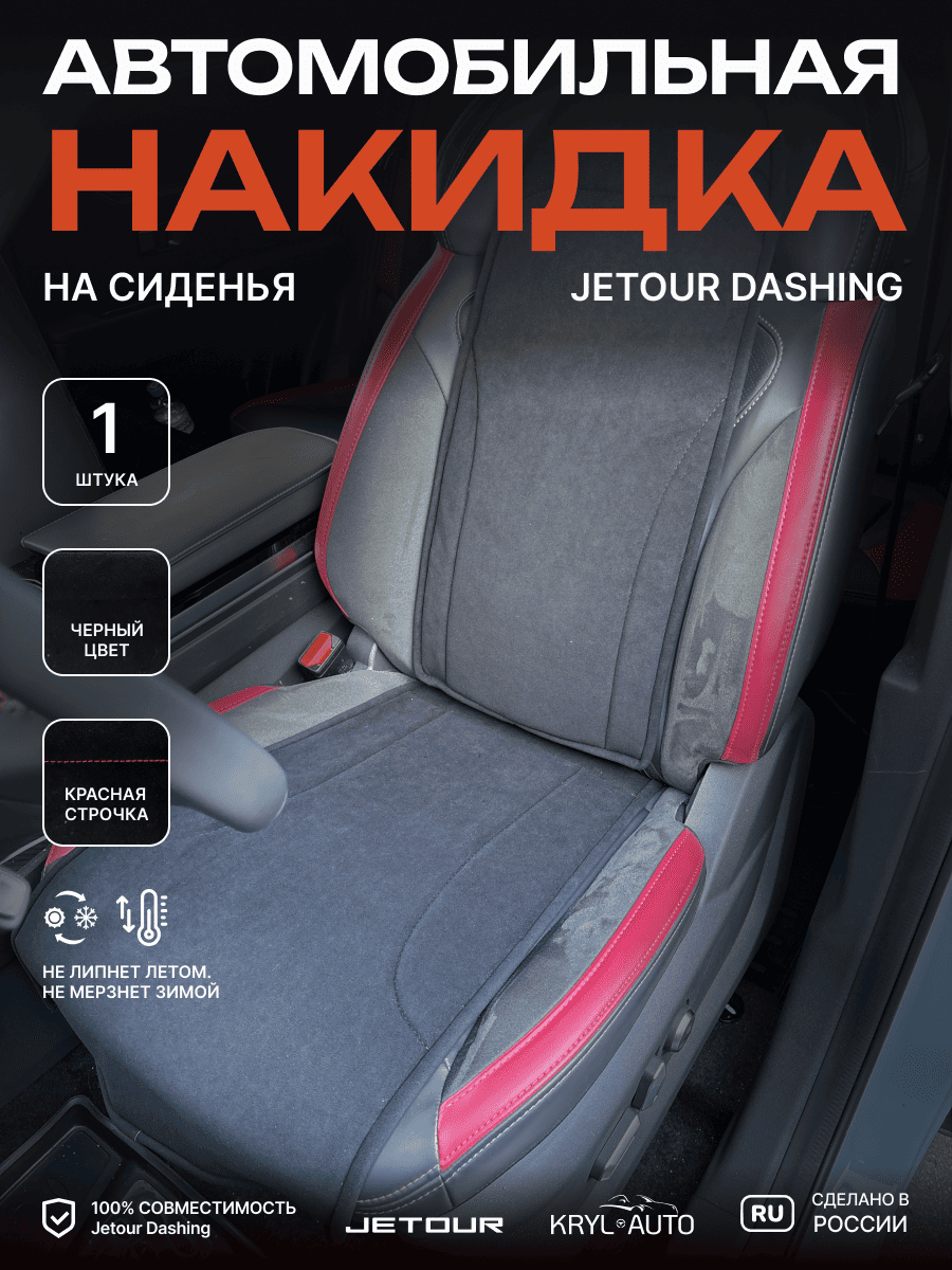 Совместимость: подходит для Jetour Dashing. Материал: микровелюр — мягкий, приятный на ощупь, легко чистится, не выгорает. Назначение: защита оригинальной обивки от загрязнений, износа, повреждений. Комфорт зимой и летом. Крепление: надежная фиксация без смещений, простая установка без инструментов. Безопасность: не мешает срабатыванию боковых подушек безопасности (Airbag). Дизайн: современный внешний вид, улучшает интерьер салона. Уход: легко чистится влажной салфеткой или пылесосом.