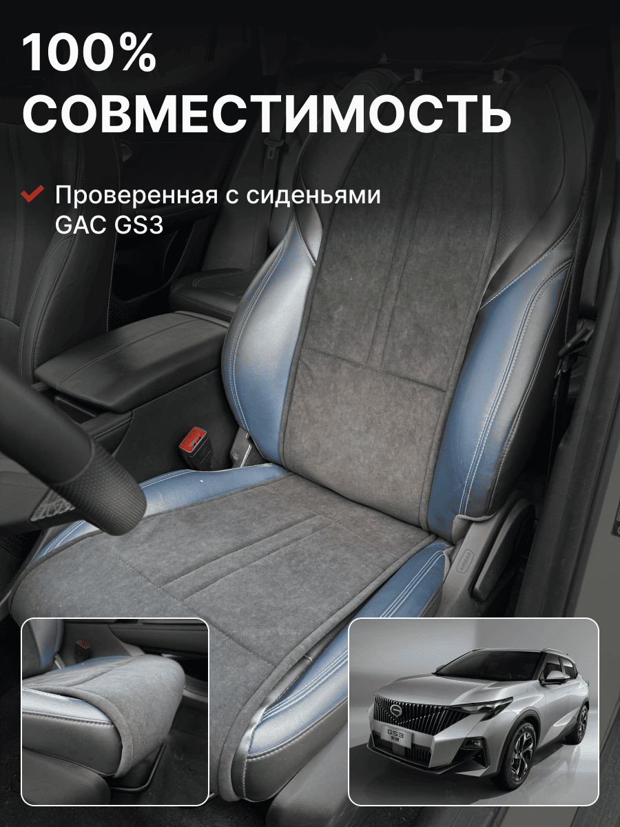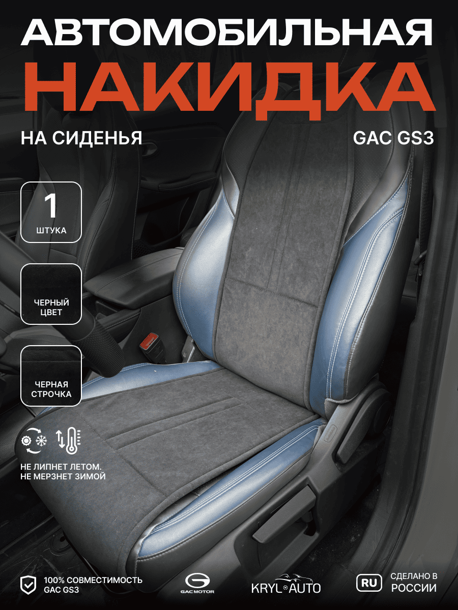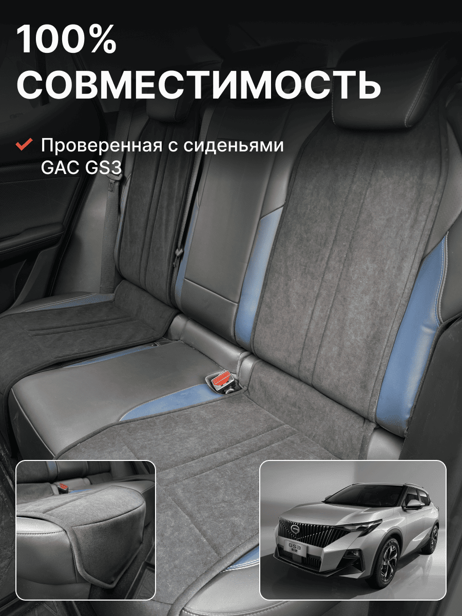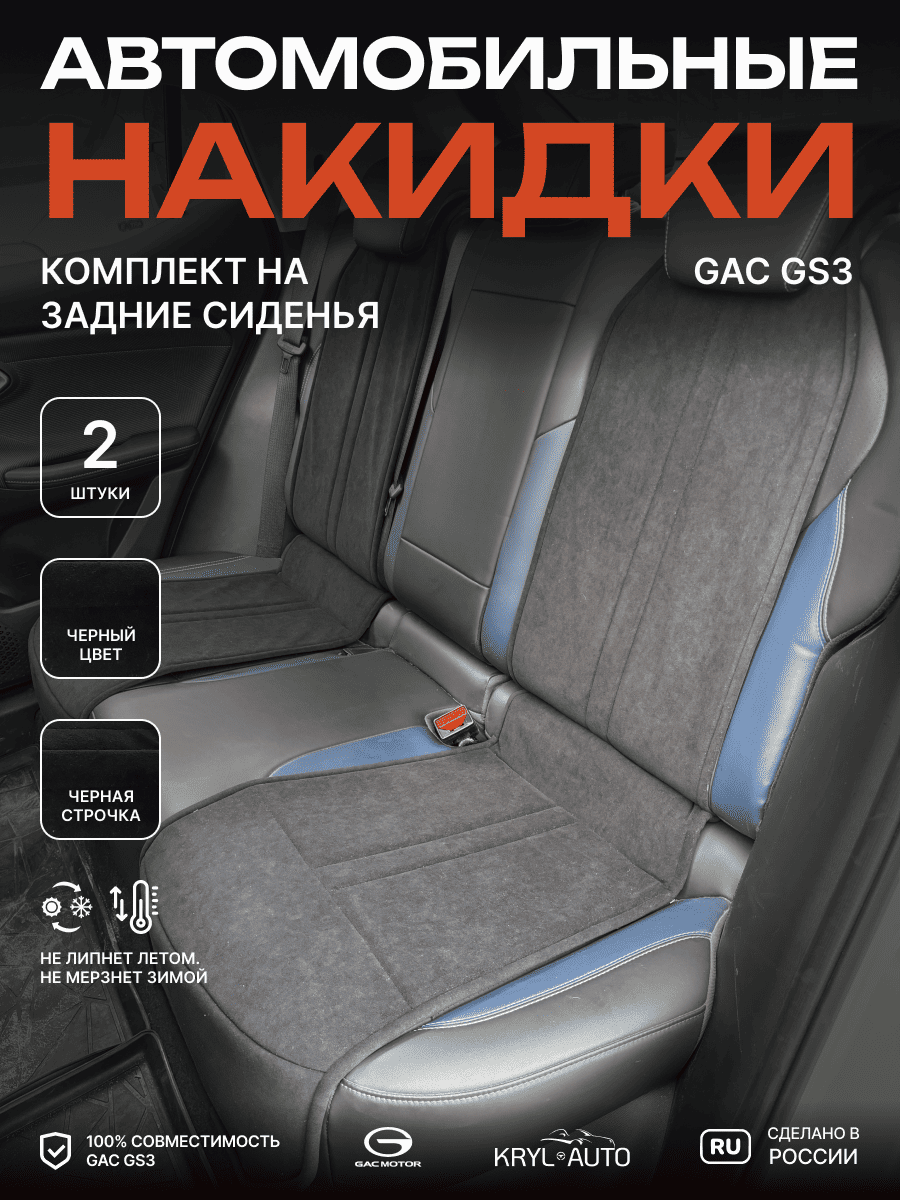 Совместимость: подходит для GAC GS3. Материал: микровелюр — мягкий, приятный на ощупь, легко чистится, не выгорает. Назначение: защита оригинальной обивки от загрязнений, износа, повреждений. Комфорт зимой и летом. Крепление: надежная фиксация без смещений, простая установка без инструментов. Безопасность: не мешает срабатыванию боковых подушек безопасности (Airbag). Дизайн: современный внешний вид, улучшает интерьер салона. Уход: легко чистится влажной салфеткой или пылесосом.