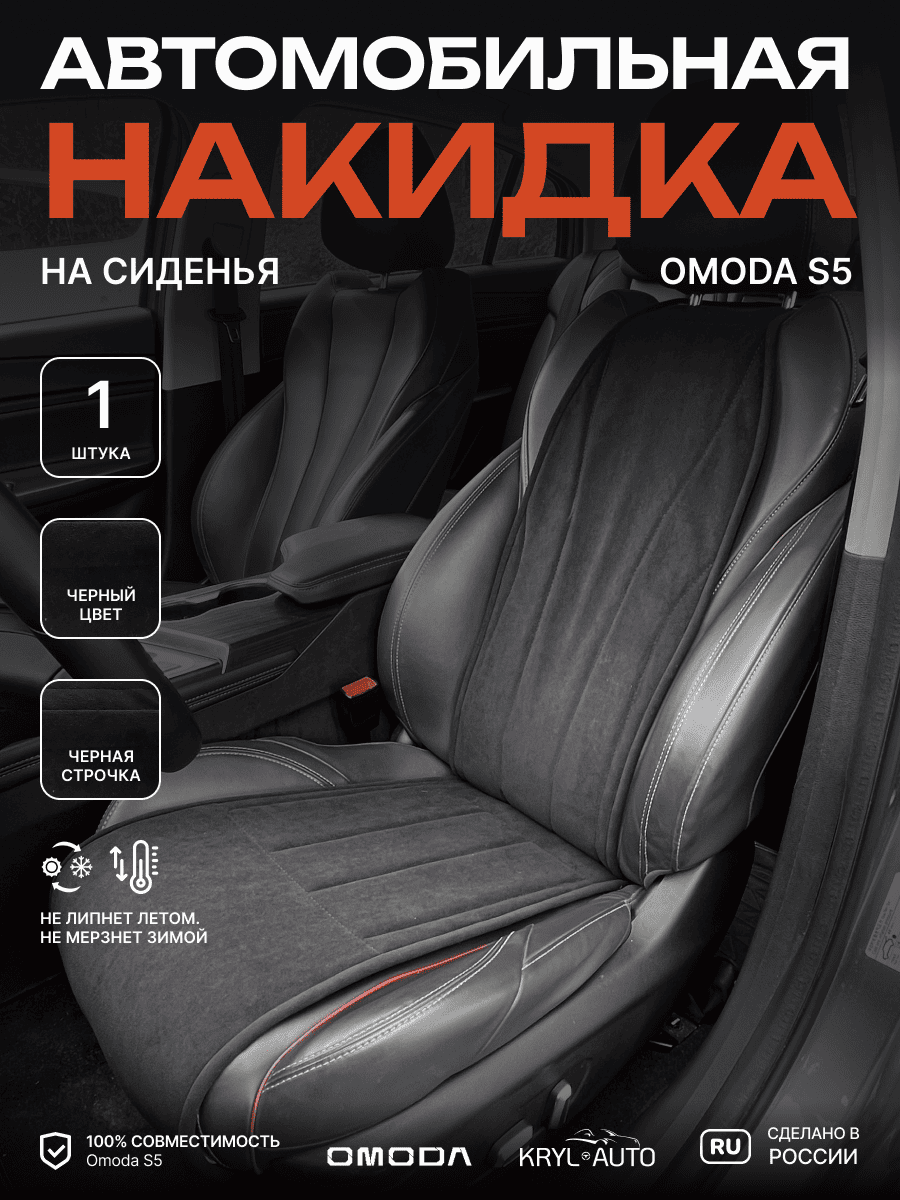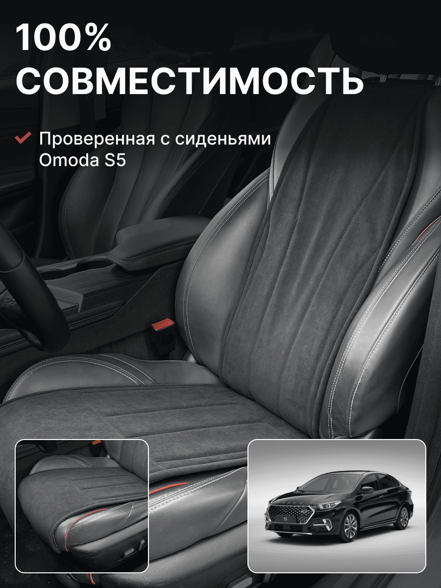 Совместимость: подходит для Omoda S5. Материал: микровелюр — мягкий, приятный на ощупь, легко чистится, не выгорает. Назначение: защита оригинальной обивки от загрязнений, износа, повреждений. Комфорт зимой и летом. Крепление: надежная фиксация без смещений, простая установка без инструментов. Безопасность: не мешает срабатыванию боковых подушек безопасности (Airbag). Дизайн: современный внешний вид, улучшает интерьер салона. Уход: легко чистится влажной салфеткой или пылесосом.