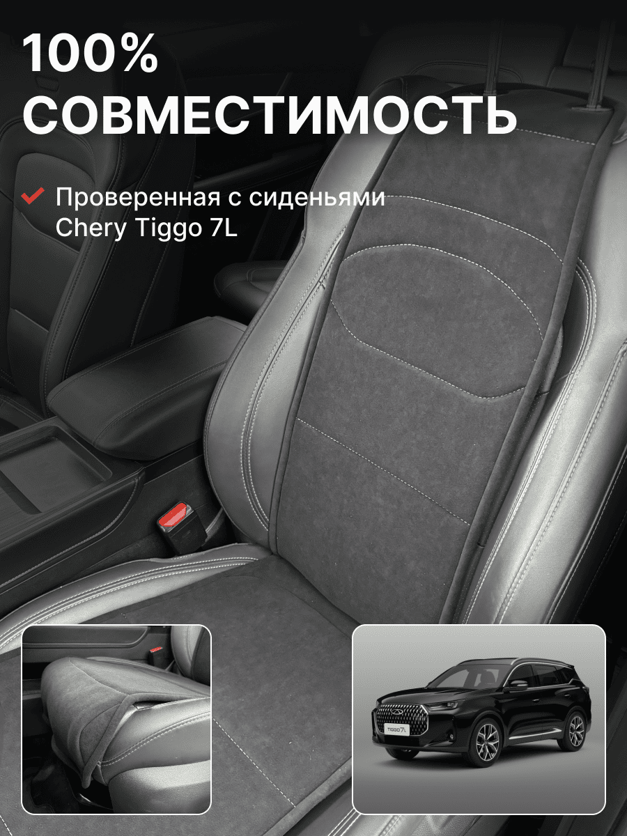Совместимость: подходит для Chery Tiggo 7L. Материал: микровелюр — мягкий, приятный на ощупь, легко чистится, не выгорает. Назначение: защита оригинальной обивки от загрязнений, износа, повреждений. Комфорт зимой и летом. Крепление: надежная фиксация без смещений, простая установка без инструментов. Безопасность: не мешает срабатыванию боковых подушек безопасности (Airbag). Дизайн: современный внешний вид, улучшает интерьер салона. Уход: легко чистится влажной салфеткой или пылесосом.