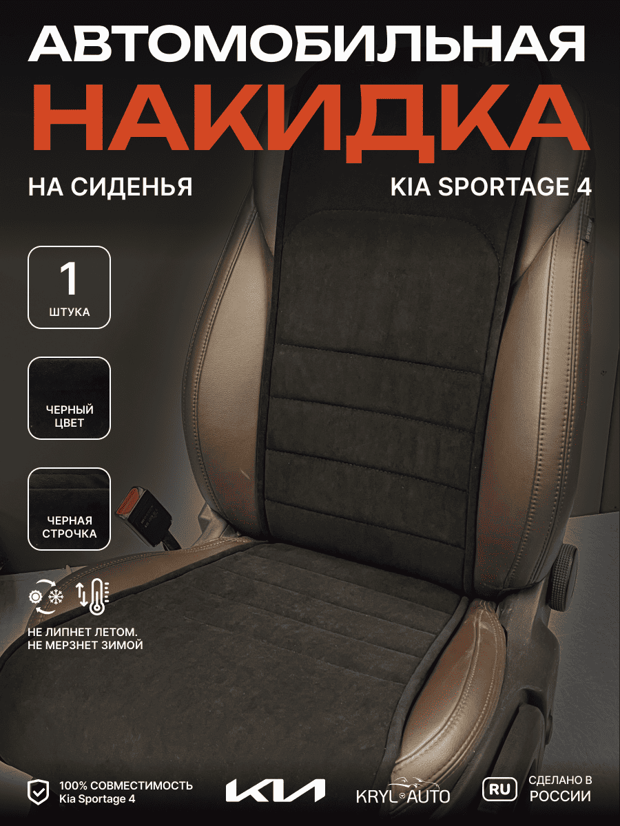 Совместимость: подходит для Kia Sportage 4. Материал: микровелюр — мягкий, приятный на ощупь, легко чистится, не выгорает. Назначение: защита оригинальной обивки от загрязнений, износа, повреждений. Комфорт зимой и летом. Крепление: надежная фиксация без смещений, простая установка без инструментов. Безопасность: не мешает срабатыванию боковых подушек безопасности (Airbag). Дизайн: современный внешний вид, улучшает интерьер салона. Уход: легко чистится влажной салфеткой или пылесосом.