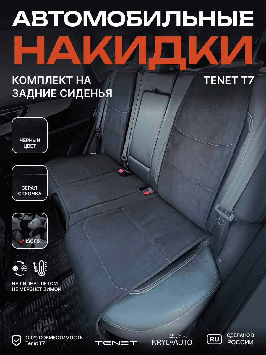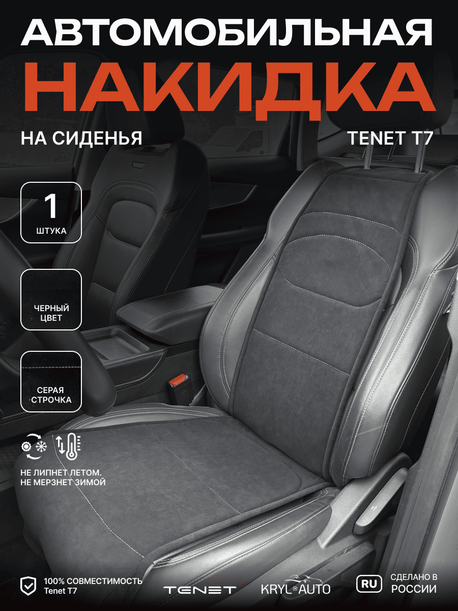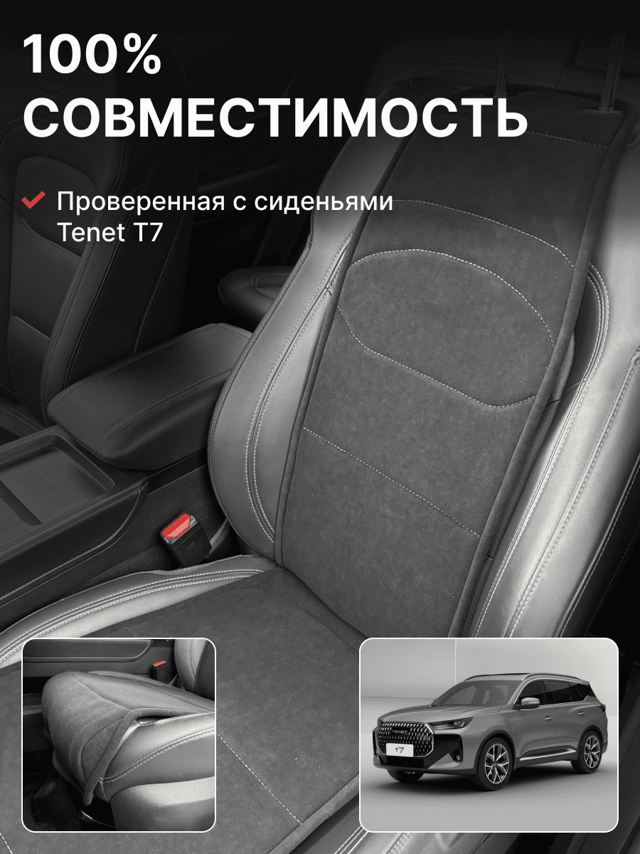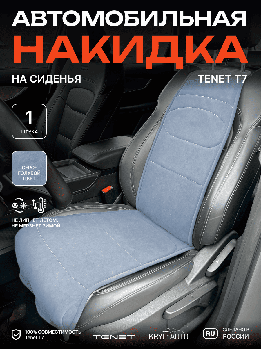 Совместимость: подходит для Tenet T7. Материал: микровелюр — мягкий, приятный на ощупь, легко чистится, не выгорает. Назначение: защита оригинальной обивки от загрязнений, износа, повреждений. Комфорт зимой и летом. Крепление: надежная фиксация без смещений, простая установка без инструментов. Безопасность: не мешает срабатыванию боковых подушек безопасности (Airbag). Дизайн: современный внешний вид, улучшает интерьер салона. Уход: легко чистится влажной салфеткой или пылесосом.