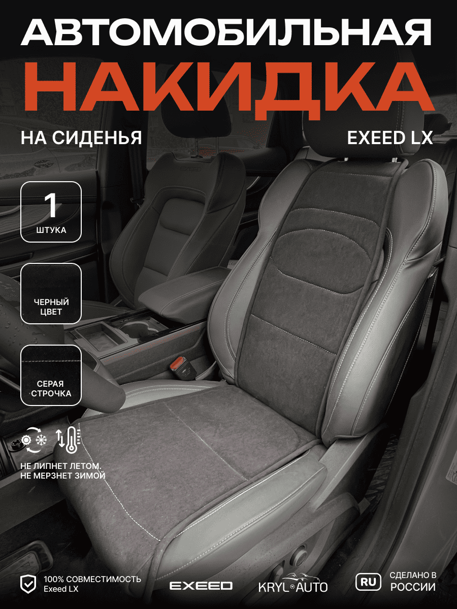 Совместимость: подходит для Exeed LX. Материал: микровелюр — мягкий, приятный на ощупь, легко чистится, не выгорает. Назначение: защита оригинальной обивки от загрязнений, износа, повреждений. Комфорт зимой и летом. Крепление: надежная фиксация без смещений, простая установка без инструментов. Безопасность: не мешает срабатыванию боковых подушек безопасности (Airbag). Дизайн: современный внешний вид, улучшает интерьер салона. Уход: легко чистится влажной салфеткой или пылесосом.