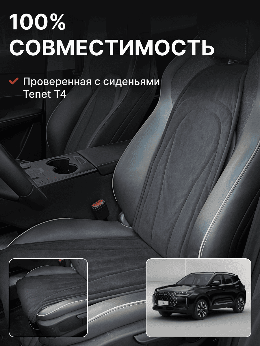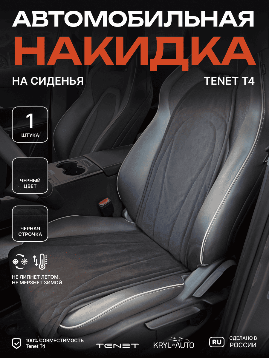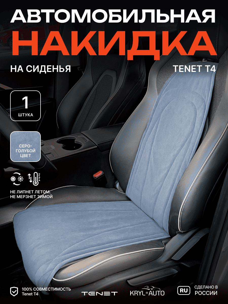 Совместимость: подходит для Tenet T4. Материал: микровелюр — мягкий, приятный на ощупь, легко чистится, не выгорает. Назначение: защита оригинальной обивки от загрязнений, износа, повреждений. Комфорт зимой и летом. Крепление: надежная фиксация без смещений, простая установка без инструментов. Безопасность: не мешает срабатыванию боковых подушек безопасности (Airbag). Дизайн: современный внешний вид, улучшает интерьер салона. Уход: легко чистится влажной салфеткой или пылесосом.