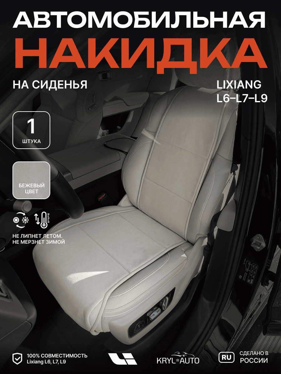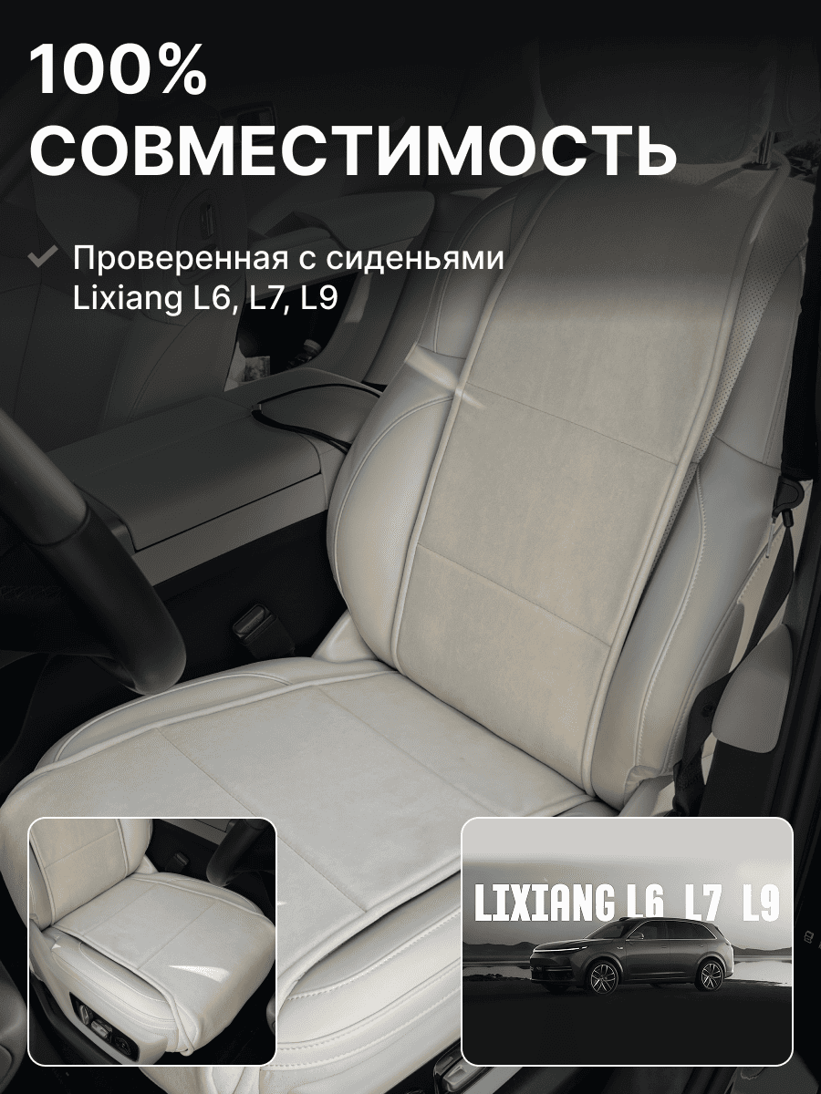 Совместимость: подходит для Lixiang L6, L7, L9. Материал: микровелюр — мягкий, приятный на ощупь, легко чистится, не выгорает. Назначение: защита оригинальной обивки от загрязнений, износа, повреждений. Комфорт зимой и летом. Крепление: надежная фиксация без смещений, простая установка без инструментов. Безопасность: не мешает срабатыванию боковых подушек безопасности (Airbag). Дизайн: современный внешний вид, улучшает интерьер салона. Уход: легко чистится влажной салфеткой или пылесосом.