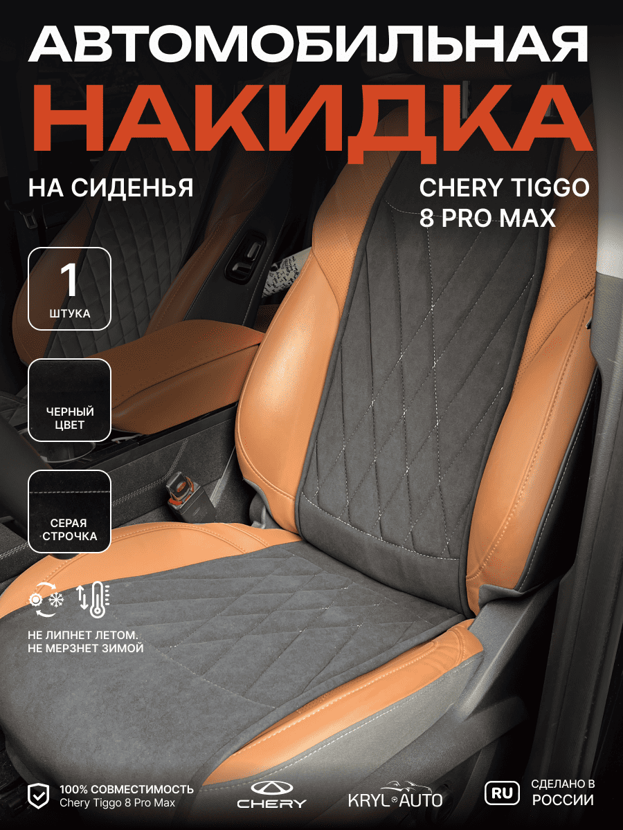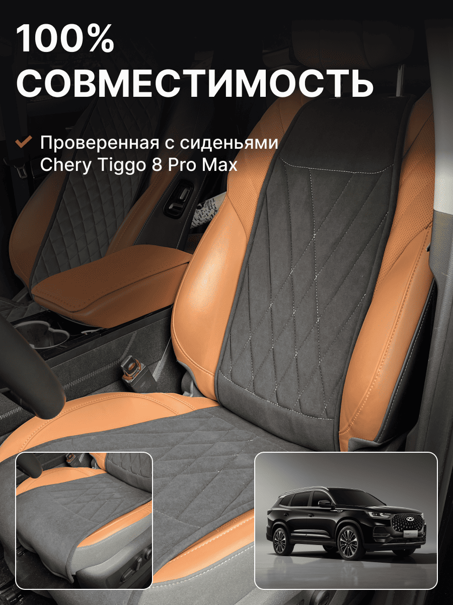Совместимость: подходит для Chery Tiggo 8 Pro Max. Материал: микровелюр — мягкий, приятный на ощупь, легко чистится, не выгорает. Назначение: защита оригинальной обивки от загрязнений, износа, повреждений. Комфорт зимой и летом. Крепление: надежная фиксация без смещений, простая установка без инструментов. Безопасность: не мешает срабатыванию боковых подушек безопасности (Airbag). Дизайн: современный внешний вид, улучшает интерьер салона. Уход: легко чистится влажной салфеткой или пылесосом.