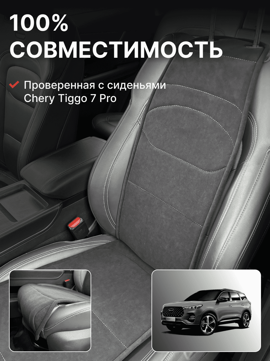 Совместимость: подходит для Chery Tiggo 7 Pro Max. Материал: микровелюр — мягкий, приятный на ощупь, легко чистится, не выгорает. Назначение: защита оригинальной обивки от загрязнений, износа, повреждений. Комфорт зимой и летом. Крепление: надежная фиксация без смещений, простая установка без инструментов. Безопасность: не мешает срабатыванию боковых подушек безопасности (Airbag). Дизайн: современный внешний вид, улучшает интерьер салона. Уход: легко чистится влажной салфеткой или пылесосом.