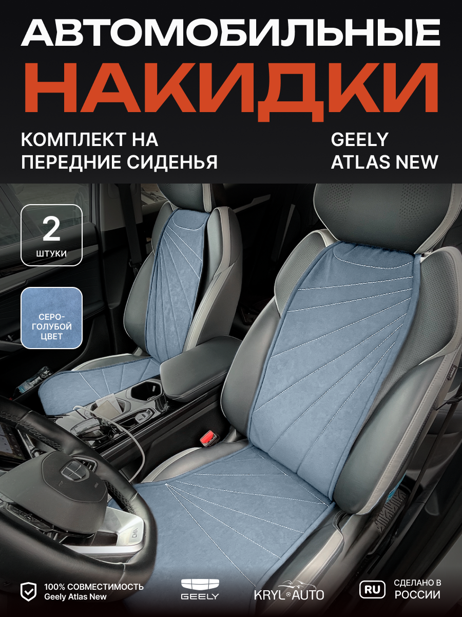 Накидка для Geely Atlas Pro (2021-2025) на переднее сиденье, серо-голубой, 1 шт.